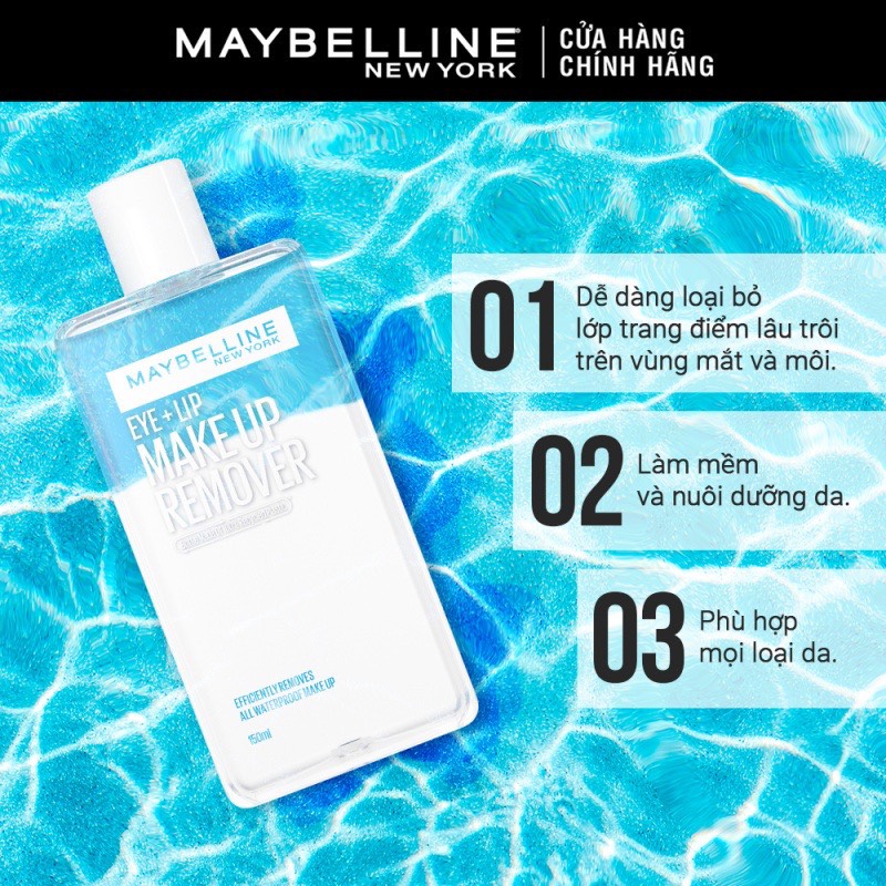 Nước Tẩy Trang Dành Cho Mắt Môi Maybelline Eye & Lip Makeup Remover là nước tẩy trang chuyên nghiệp dùng cho vùng da quanh mắt và môi, chứa tinh chát hoa hồng có tác dụng dưỡng da, làm mềm da và tránh tình trạng khô rát sau khi tẩy trang thuộc thương hiệu Maybelline đến từ Mỹ.