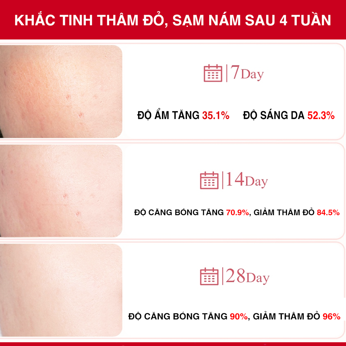 - Khắc phục thâm đỏ chuyên sâu, giảm thiểu hình thành hắc sắc tố sạm nám trên da.