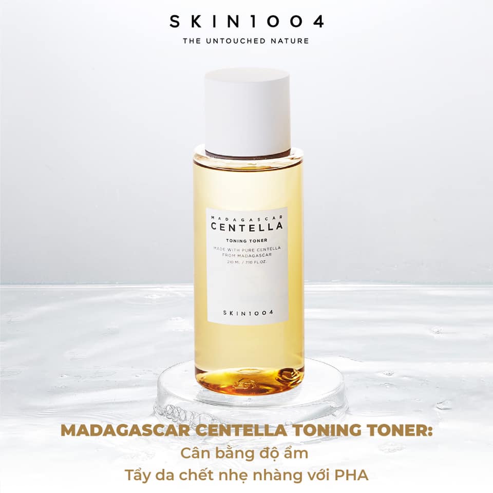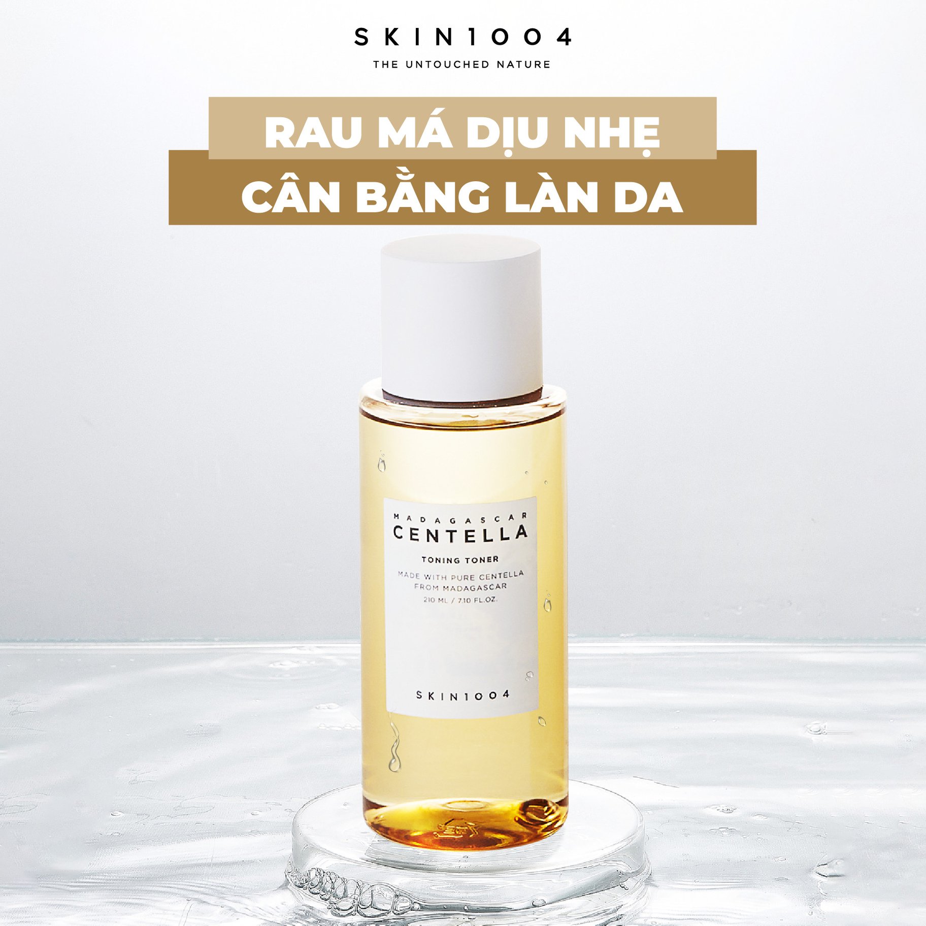 Nước Hoa Hồng Giúp Cân Bằng, Dưỡng Trắng Da Chiết Xuất Rau Má Skin1004 Madagascar Centella Toning Toner là nước hoa hồng Chiết xuất rau má (84%) kết hợp cùng thành phần PHA dịu nhẹ, không gây kích ứng, không chứa cồn và hương liệu giúp làm sạch được chất nhờn, bụi bẩn còn sót lại tận sâu trong lỗ chân lông, vừa cung cấp độ ẩm cho da, cân bằng PH cho da hiệu quả, vừa có công dụng làm se khít lỗ chân lông thuộc thương hiệu Skin1004 đến từ Hàn Quốc.