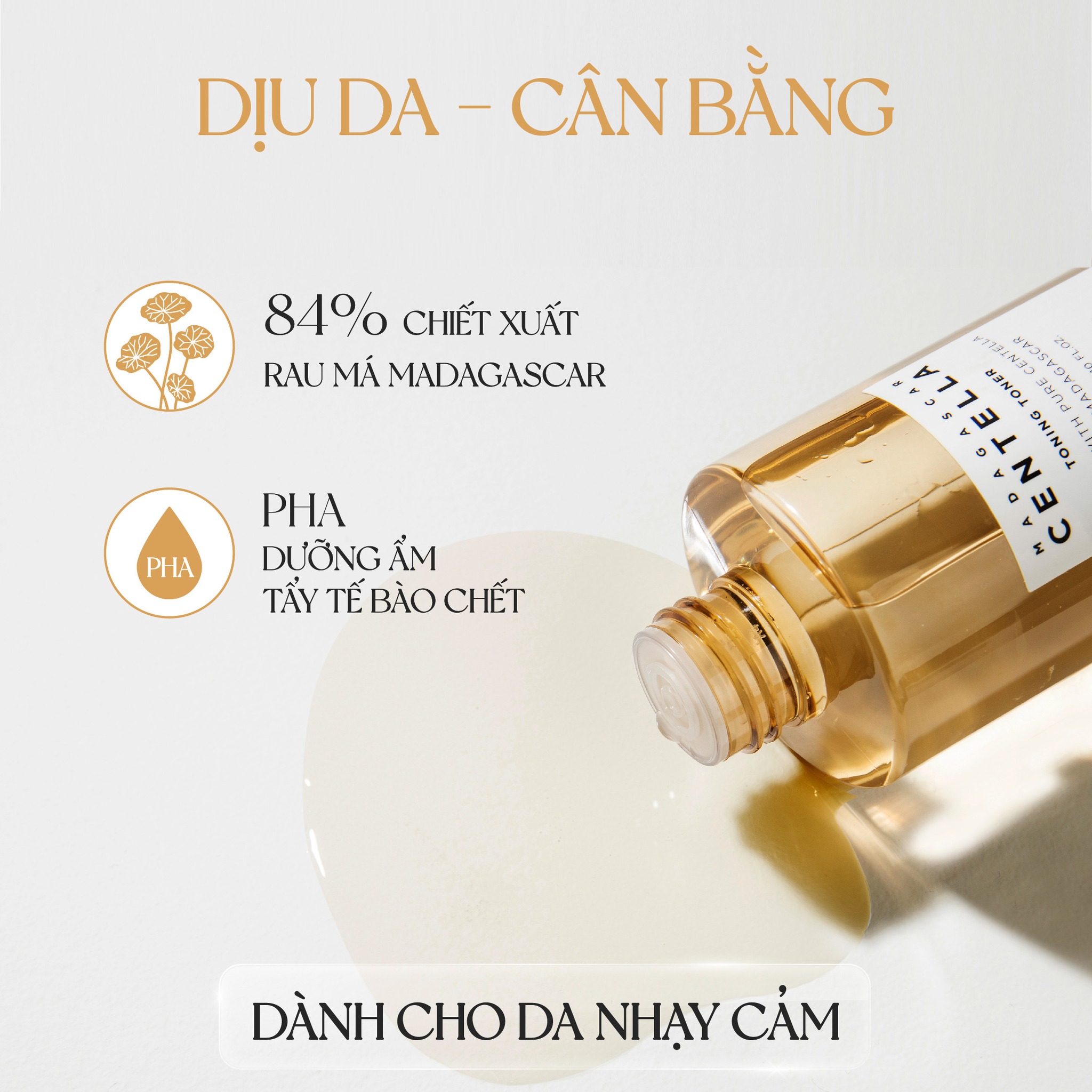 - Nước Hoa Hồng Giúp Cân Bằng, Dưỡng Trắng Da Chiết Xuất Rau Má Skin1004 Madagascar Centella Toning Toner với xuất rau má (84%) kết hợp cùng thành phần PHA dịu nhẹ, không gây kích ứng, không chứa cồn và hương liệu giúp làm sạch chất nhờn, bụi bẩn còn sót lại tận sâu trong lỗ chân lông, vừa cung cấp độ ẩm cho da, cân bằng PH cho da hiệu quả, vừa có công dụng làm se khít lỗ chân lông.