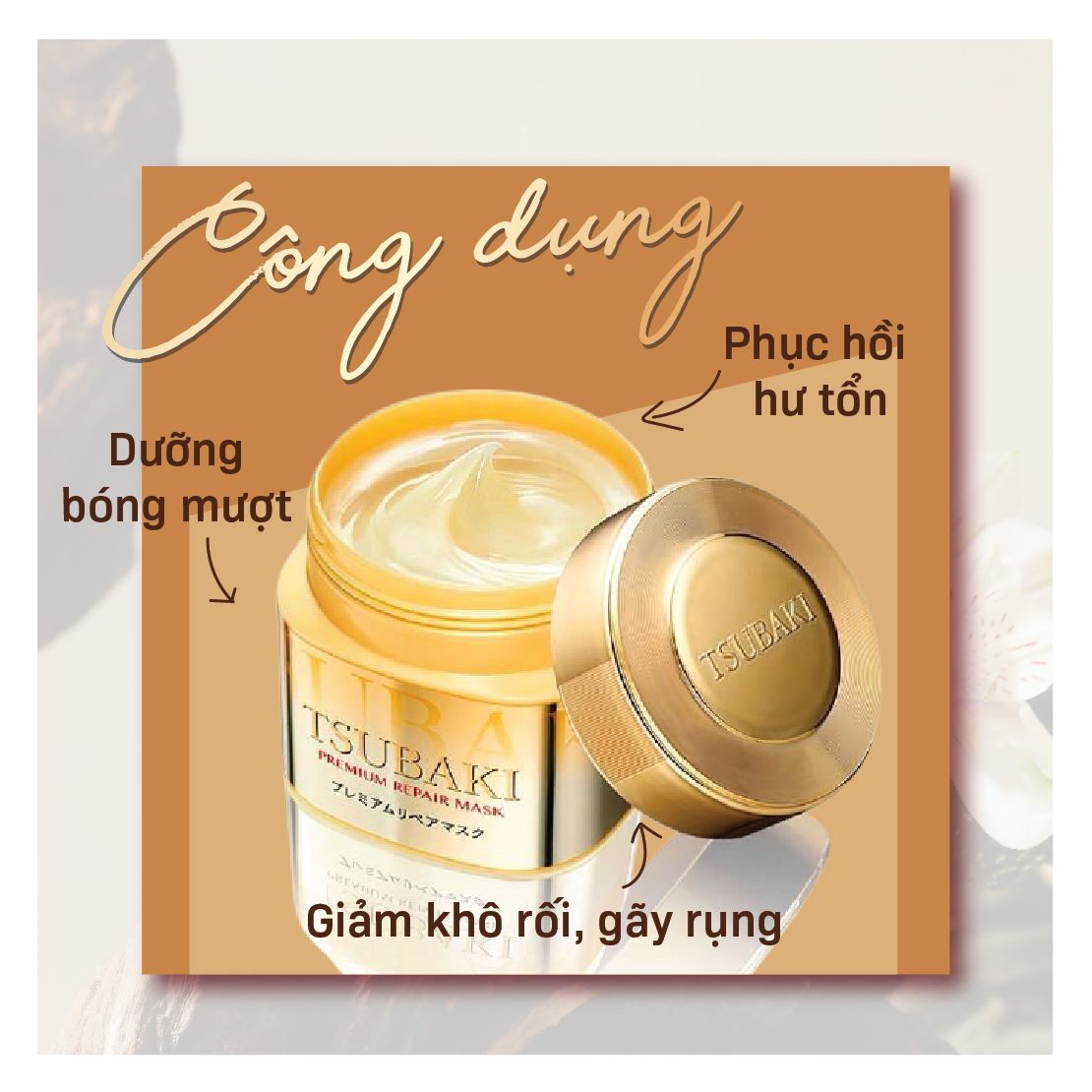 Mặt Nạ Tóc Cao Cấp Phục Hồi Hư Tổn Tsubaki Premium Repair Mask là mặt nạ dưỡng tóc thuộc thương hiệu Tsubaki giúp mái tóc khô xơ hư tổn nặng trở nên mềm mượt và bóng hơn bằng cách tái tạo lại lớp biểu bì tóc bị rách và giữ cho tóc ngậm nước. Tạo hiệu quả bóng mượt tức thì như dưỡng tóc ở salon mà không mất thời gian chờ đợi.