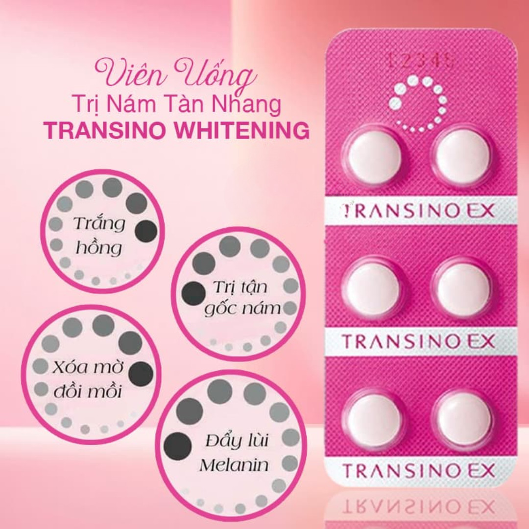 Viên Uống Trắng Da Trị Nám Transino Whitening EX 240v Mẫu Mới Nhất có thành phần chính là Tranexamic Acid và đã được chứng minh là có hiệu quả trong việc cải thiện tình trạng nám. Tranexamic Acid là thành phần có tác dụng kháng plasmin và được cho là có vai trò rất quan trọng trong quá trình cải thiện tình trạng nám. Plasmin được coi là một trong những yếu tố kích hoạt tế bào hắc tố và Tranexamic Acid ngăn chặn chức năng này. Tác dụng ức chế này được cho là ức chế sự kích hoạt của melanocytes (tế bào sắc tố) trước khi sản xuất melanin, từ đó ngăn chặn sự phát triển của nám.