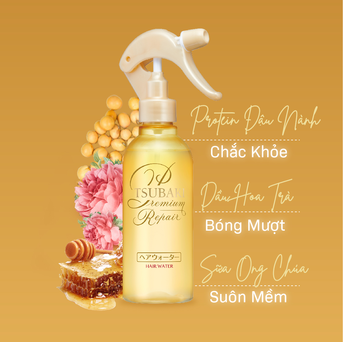 - Xịt Dưỡng Tóc Phục Hồi Hư Tổn, Ngăn Rụng Tóc Tsubaki Premium Repair Hair Water chứa Dual amino acid giúp mở rộng đường dẫn các dưỡng chất vào tóc, có khả năng phục hồi mạnh mẽ cho tóc hư tổn do các tác động từ môi trường bên ngoài như ánh nắng, gió, sử dụng nhiệt trên mái tóc giúp mái tóc hư tổn phục hồi nhanh chóng hơn.