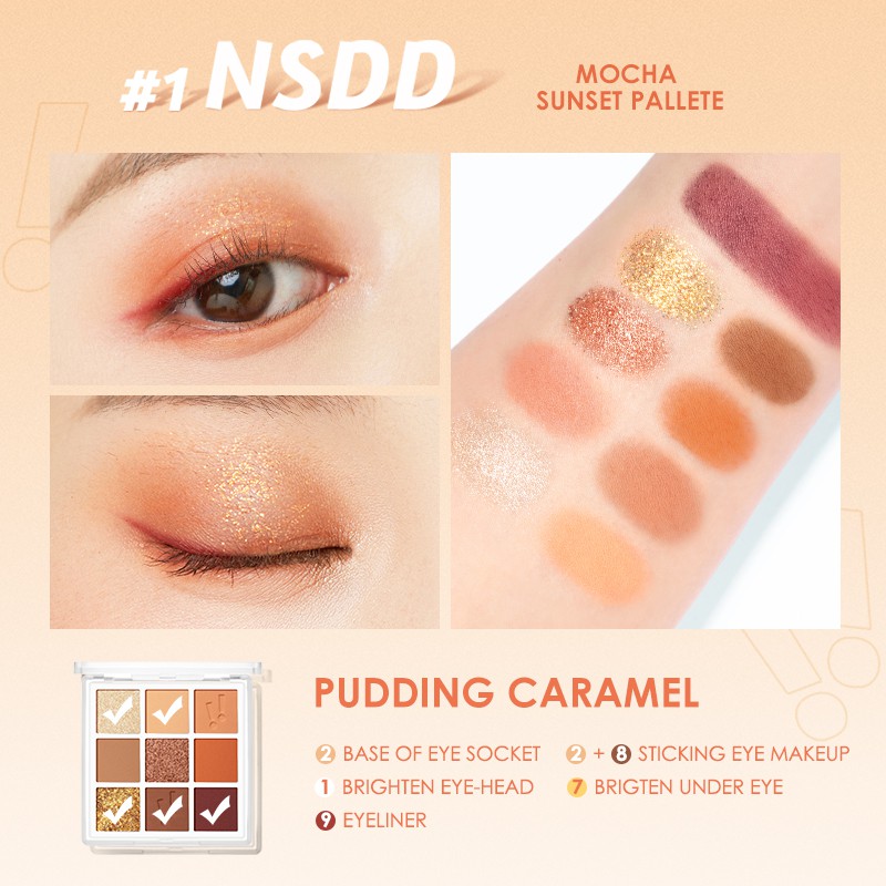 - Bảng mắt gồm 6 màu lì, 2 ngọc trai, 1 kim tuyến, tất cả các màu đều là các tone dễ đánh.