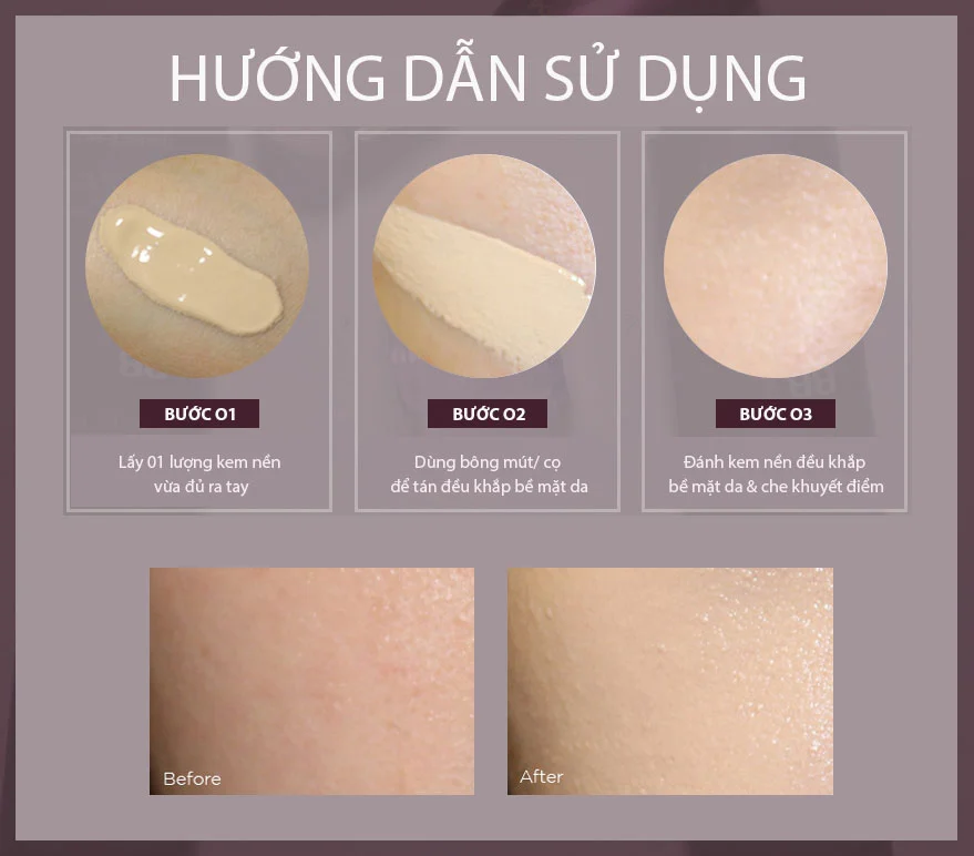 Hướng dẫn sử dụng: Sử dụng sau bước kem chống nắng. Lấy lượng kem vừa đủ và dàn trải đều khắp bề mặt da.