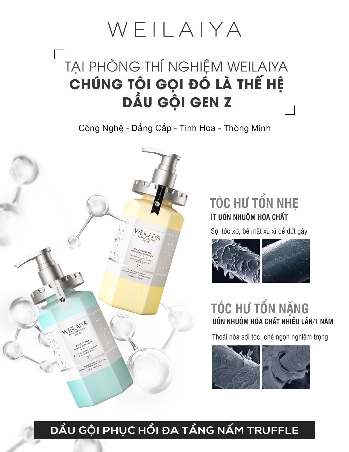 Bộ Dầu Gội Xả Phục Hồi Đa Tầng Nấm Truffle Weilaiya thuộc dòng cao cấp, dành riêng cho các salon tóc. Bộ dầu gội phục hồi đa tầng nấm truffle Weilaiya ra đời phá vỡ các khuôn mẫu cũ, thiết lập khái niệm chăm sóc tóc hoàn toàn mới, đó là: Dầu gội không chỉ dùng để làm sạch thông thường mà còn có tác dụng phục hồi chống lão hóa da đầu. Da đầu khỏe mạnh chính là yếu tố quan trọng giúp tóc chắc khỏe.