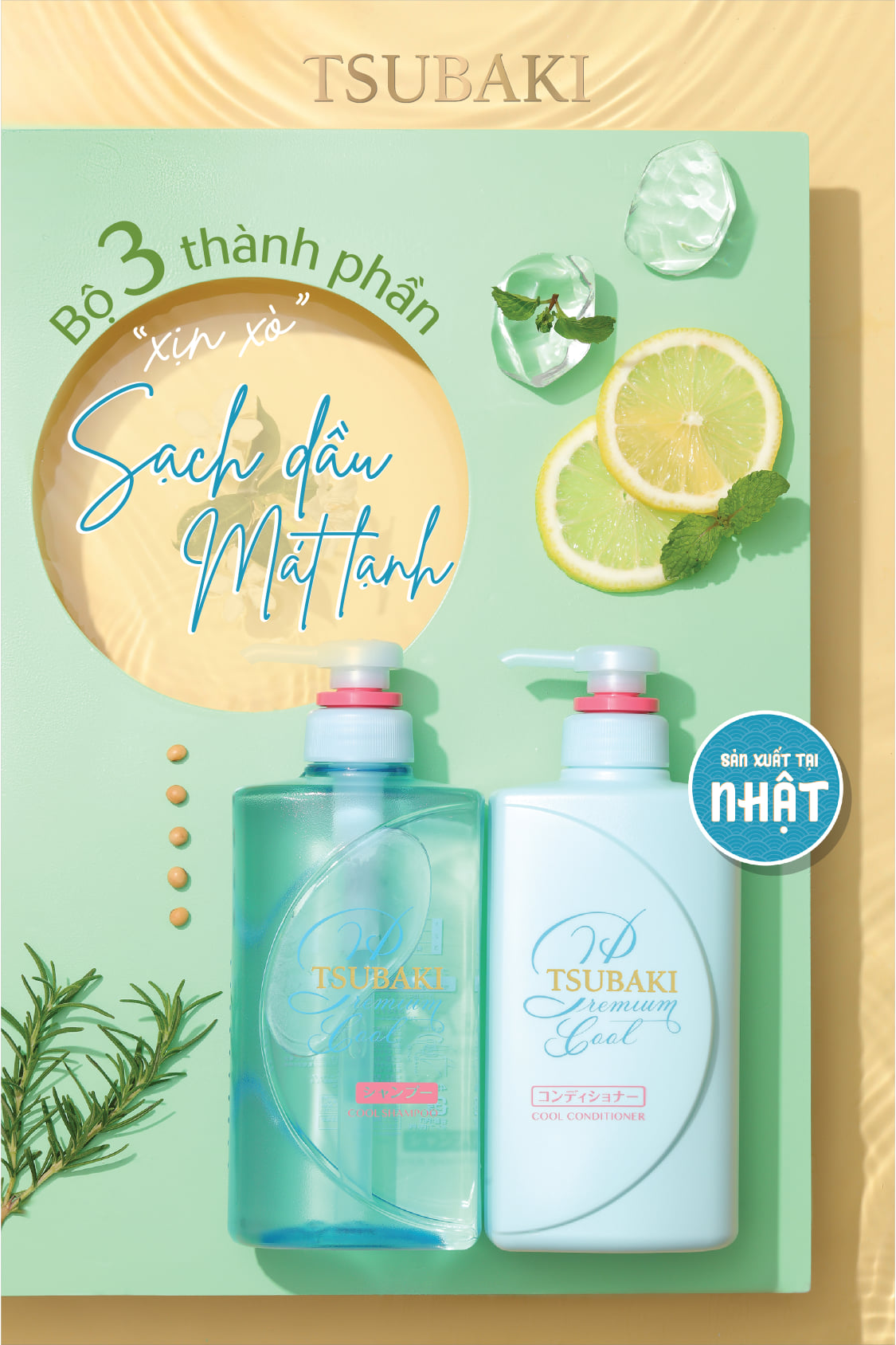 Dầu Gội Và Dầu Xả Sạch Dầu Mát Lạnh Tsubaki Premium Cool Set 490ml là dòng chăm sóc tóc mới mang đến cảm giác tươi mới, mát mẻ cho phần da đầu. Nhờ công thức chứa thảo dược, bạc hà mát lạnh giúp hỗ trợ giảm tiết dầu thừa và mang đến cảm giác thư giãn thoải mái cho mái tóc và da đầu của bạn.