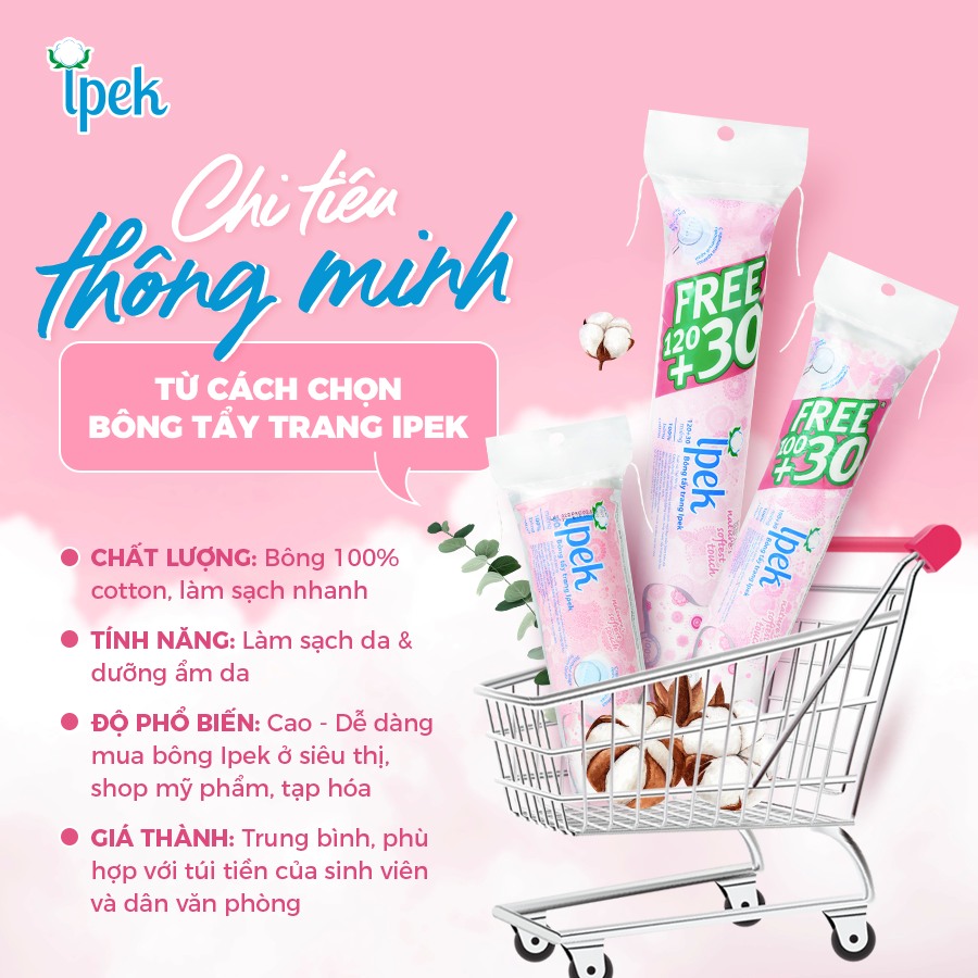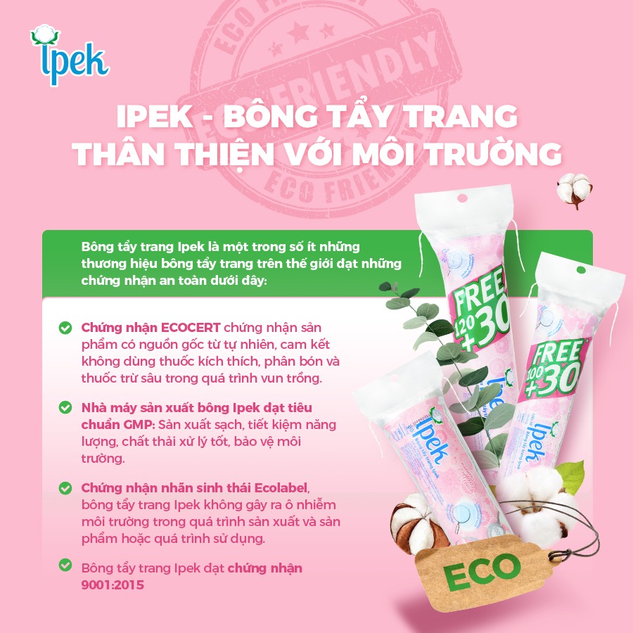 - Bông tẩy trang Ipek với công nghệ sản xuất tiên tiến giúp tẩy trang và làm sạch mọi bụi bẩn bám trên da bằng nước sạch, nước tẩy trang hay nước hoa hồng chăm sóc da.