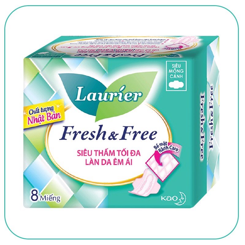 - Băng Vệ Sinh Ban Ngày Siêu Mỏng Cánh 22cm Laurier Fresh & Free với chất lượng Nhật Bản có bề mặt rãnh caro đột phá với khả năng thấm hút, khóa chặc chất dịch đặc, nhanh gấp 1,5 lần giúp chống tràn hiệu quả.