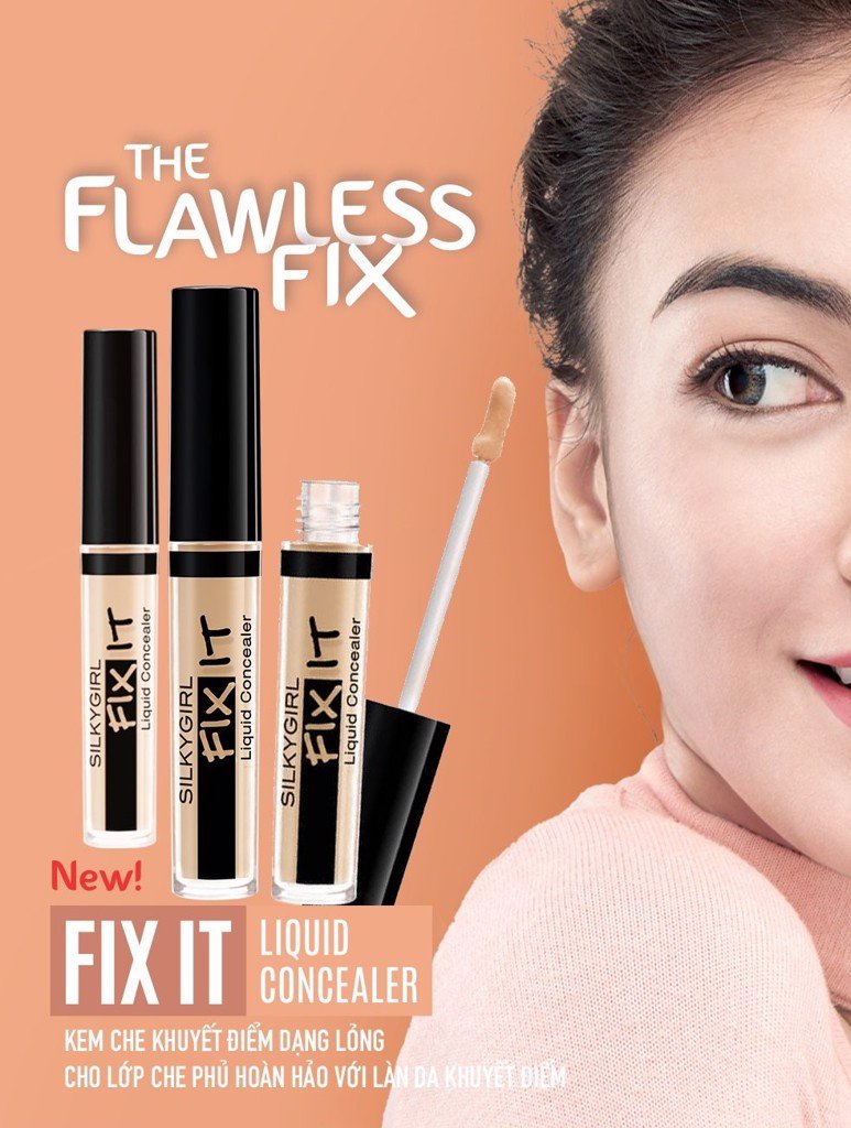 - Kem che khuyết điểm dạng lỏng Silkygirl Fix It Liquid Concealer hiện đã có mặt tại Thế giới Skinfood có thiết kế thon dài, đầu cọ cong nhẹ giúp bạn điều chỉnh lượng sản phẩm sử dụng dễ dàng cùng với