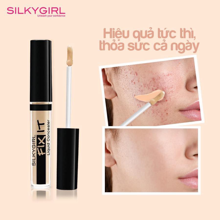 Kem Che Khuyết Điểm Che Phủ Mịn Mượt Silkygirl Fix It Liquid Concealer 2ml với khả năng che phủ hiệu quả các khuyết điểm trên da như vết mụn li ti, vết thâm sạm, tàn nhang, che mờ lỗ chân lông và làm đều màu da, cho lớp nền trang điểm thêm mịn mượt hoàn hảo không tì vết.