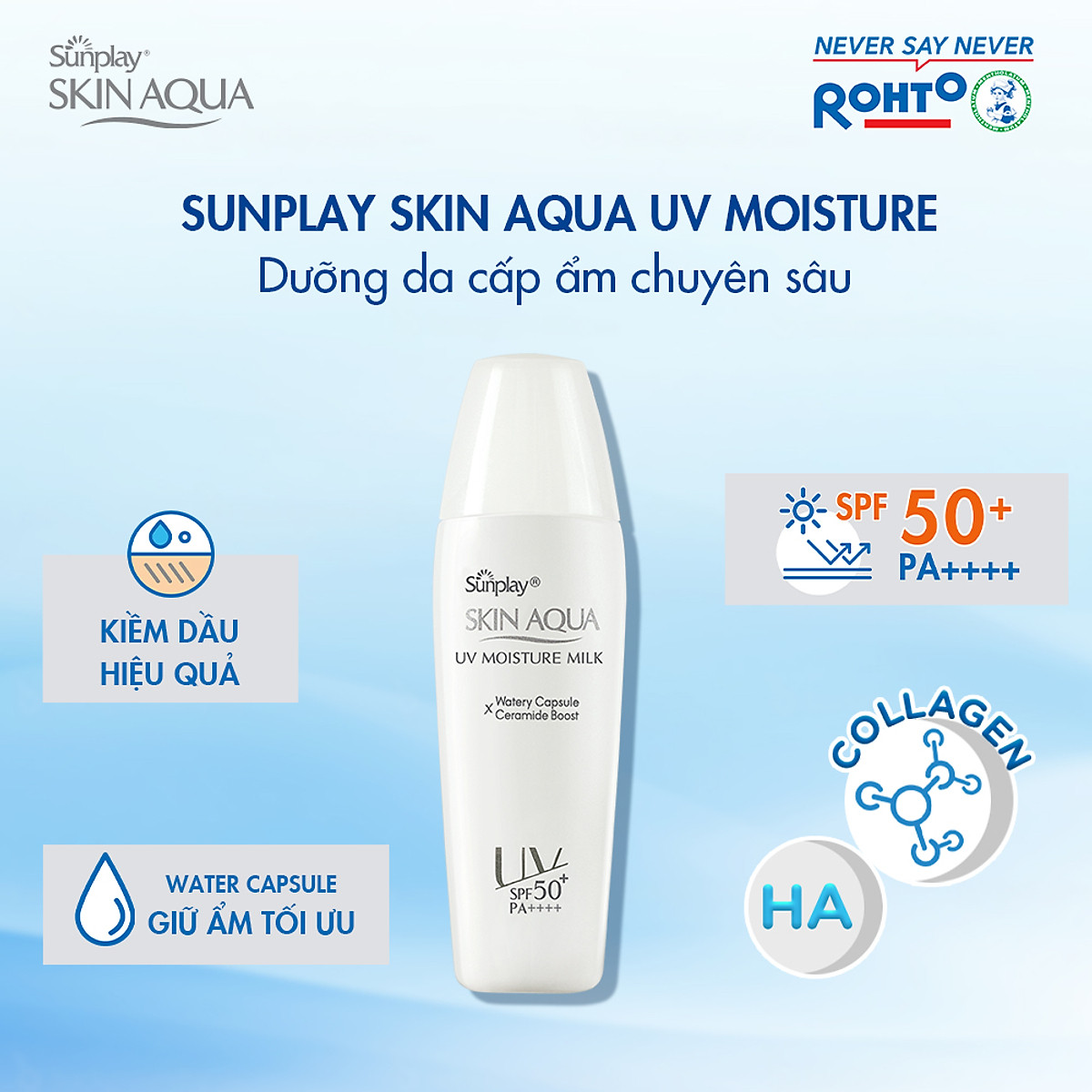 Sữa Chống Nắng, Dưỡng Ẩm Sunplay Skin Aqua UV Moisture Milk SPF 50+/PA++++ là sữa chống nắng thuộc thương hiệu Sunplay với chỉ số chống nắng cao giúp bảo vệ da tối ưu dưới tác động của ánh mặt trời. Đồng thời chứa công nghệ Aqua Boot gồm các thành phần như HA, Collagen thủy phân, Amino Acid giúp cấp nước, duy trì độ ẩm cho làn da mềm mịn hơn.