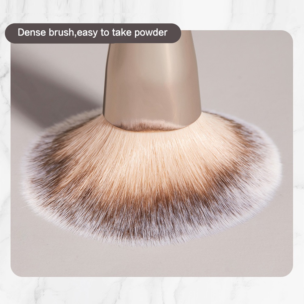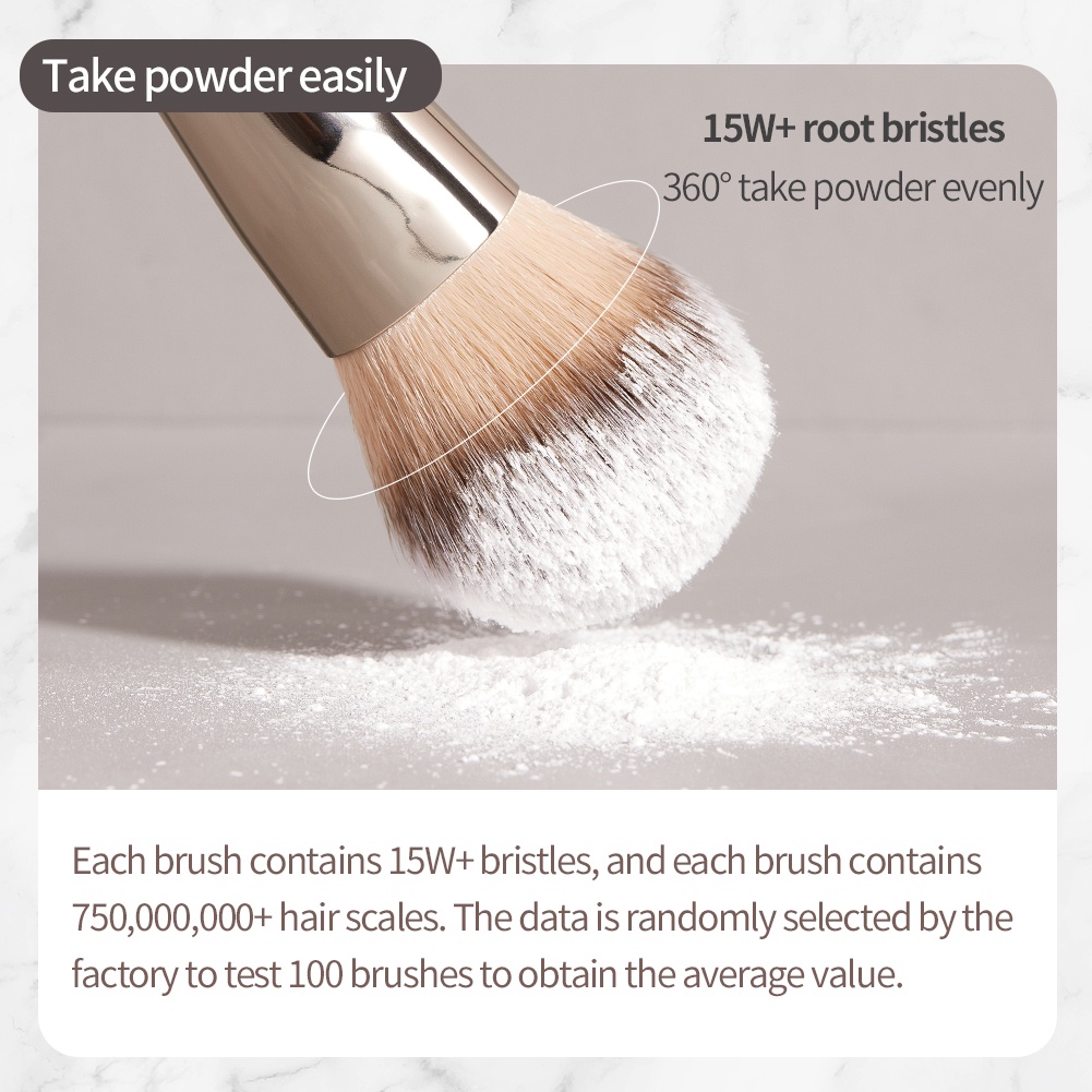 - Thiết kế chuyên nghiệp: Cọ có thiết kế bầu tròn, dày dặn, giúp tán phấn đều và mịn trên da mặt.