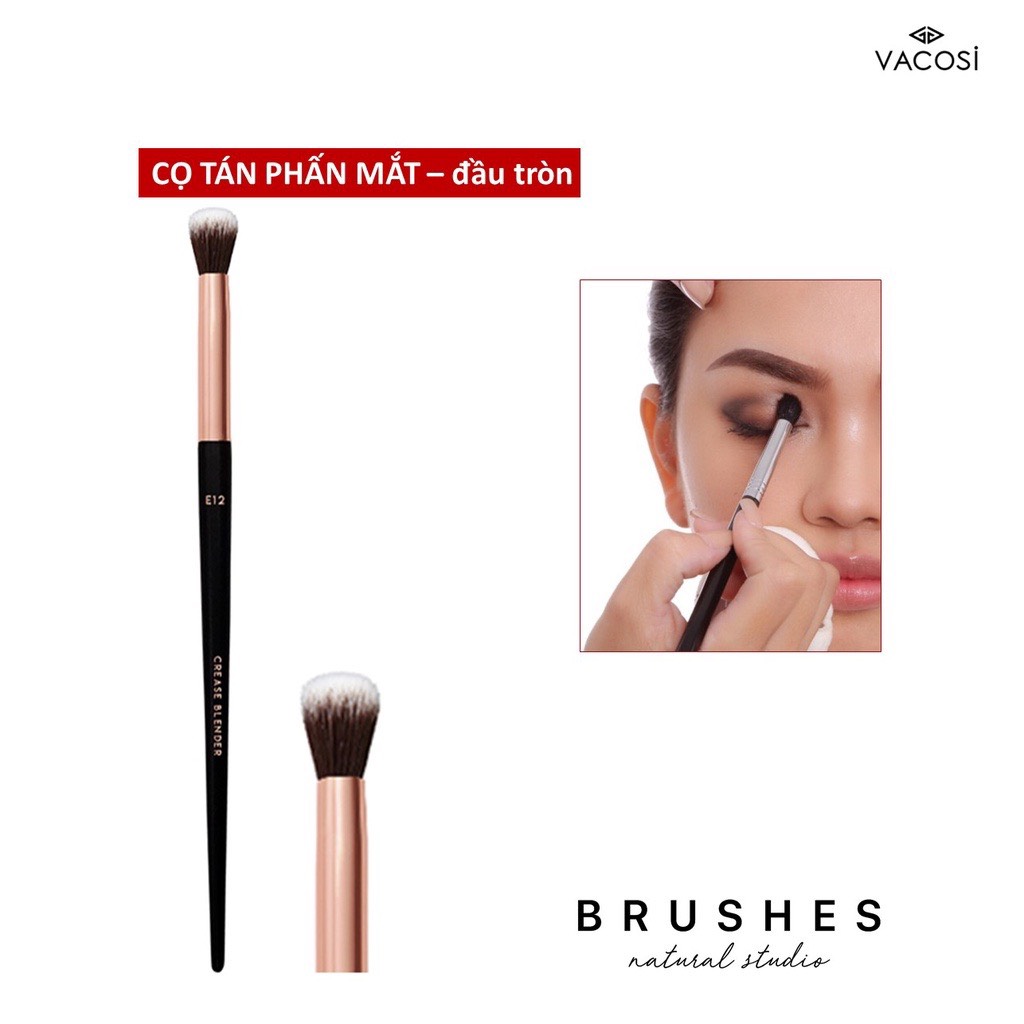 Cọ tán phấn mắt Vacosi Crease Blender - E12 là cọ trang điểm đến từ thương hiệu Vacosi với thiết kế đầu oval hoàn hảo giúp bạn xử lý màu mắt một cách tốt nhất, ngoài ra còn có thể sử dụng như 1 cây cọ highlight tạo sống mũi cho gương mặt thêm thon gọn.