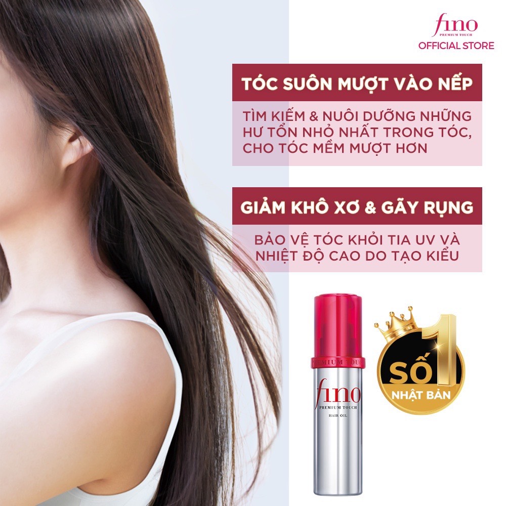 - Dầu Dưỡng Tóc Fino Premium Touch Hair Oil B 70ml với chiết xuất từ các thành phần giàu dưỡng chất giúp nuôi dưỡng và phục hồi tóc hư tổn, hạn chế tình trạng khô xơ rối, gãy rụng, chẻ gọn, giúp tóc mềm mượt, vào nếp hơn. Đồng thời còn bảo vệ tóc khỏi tia UV, ngừa tóc hư tổn do nhiệt độ cao.