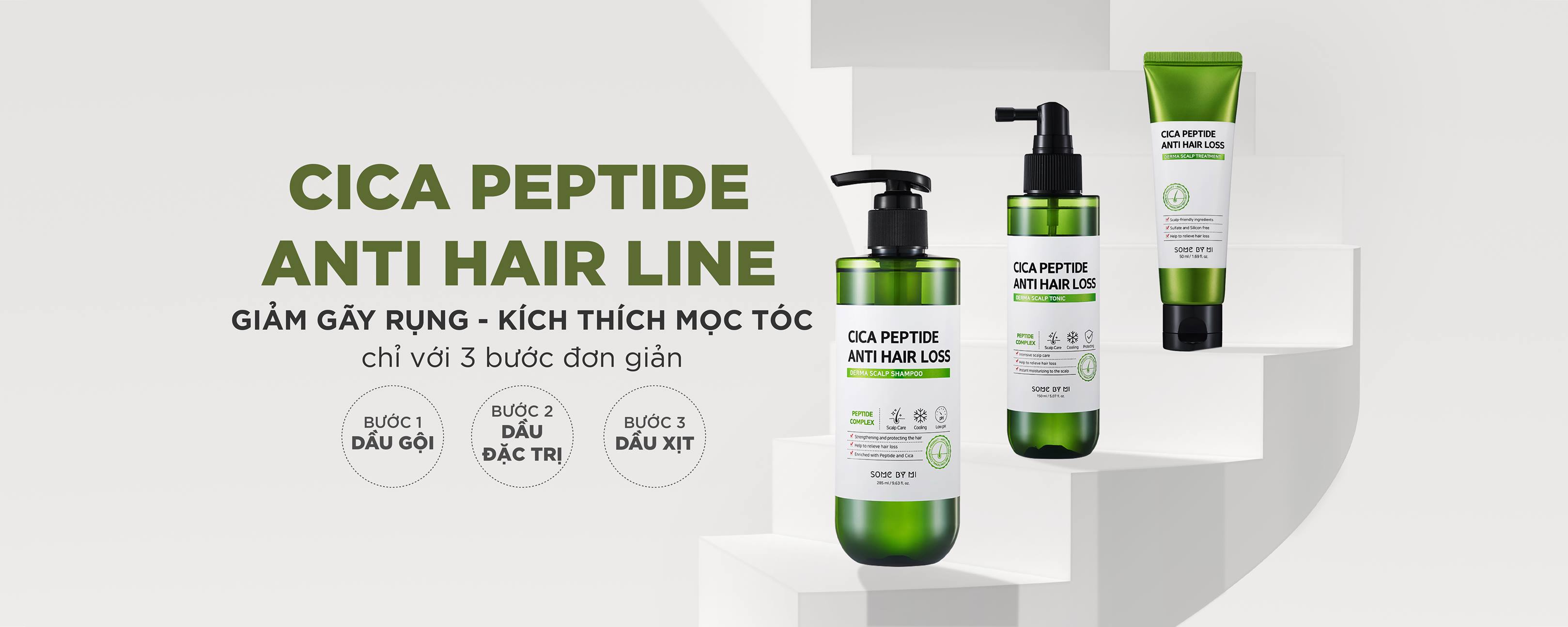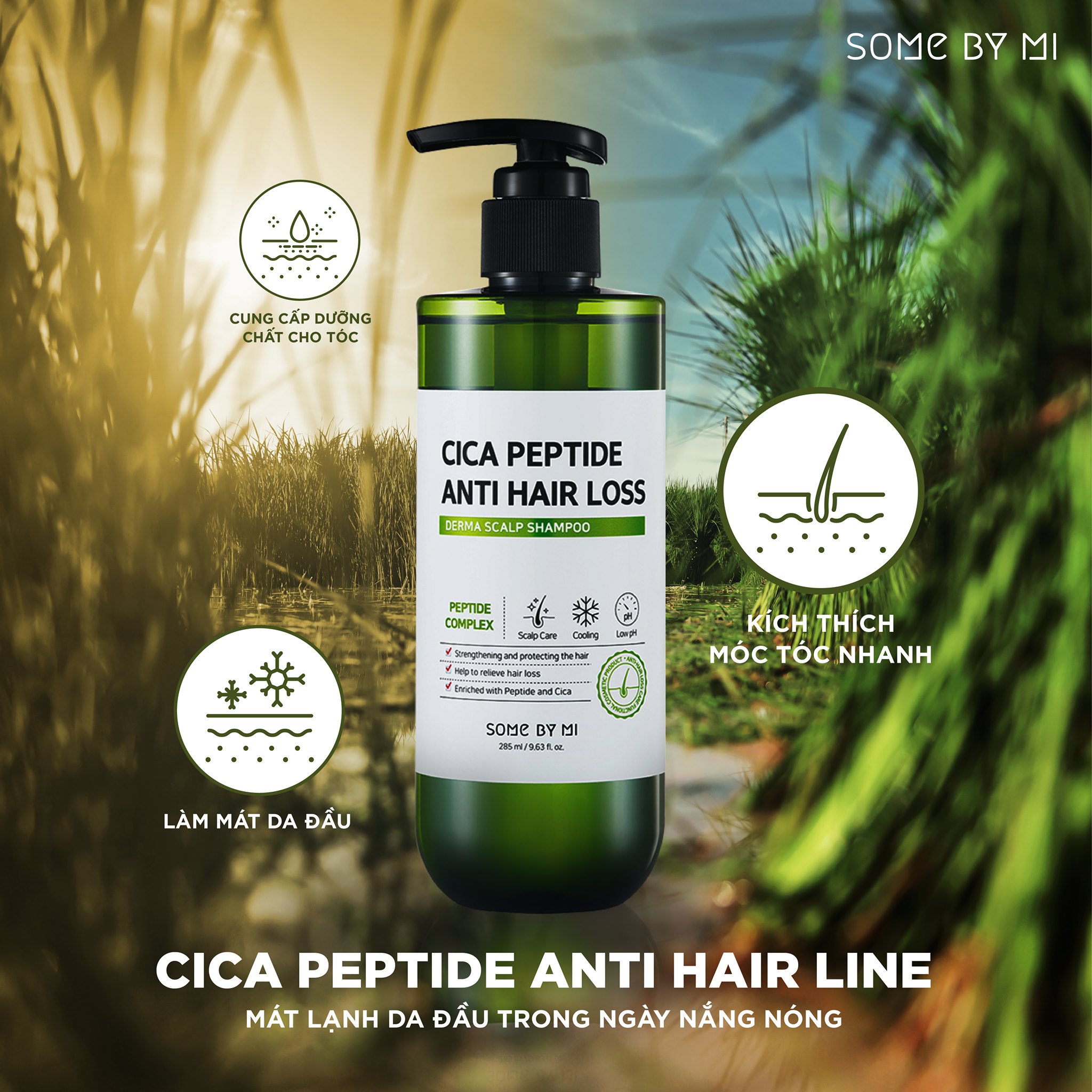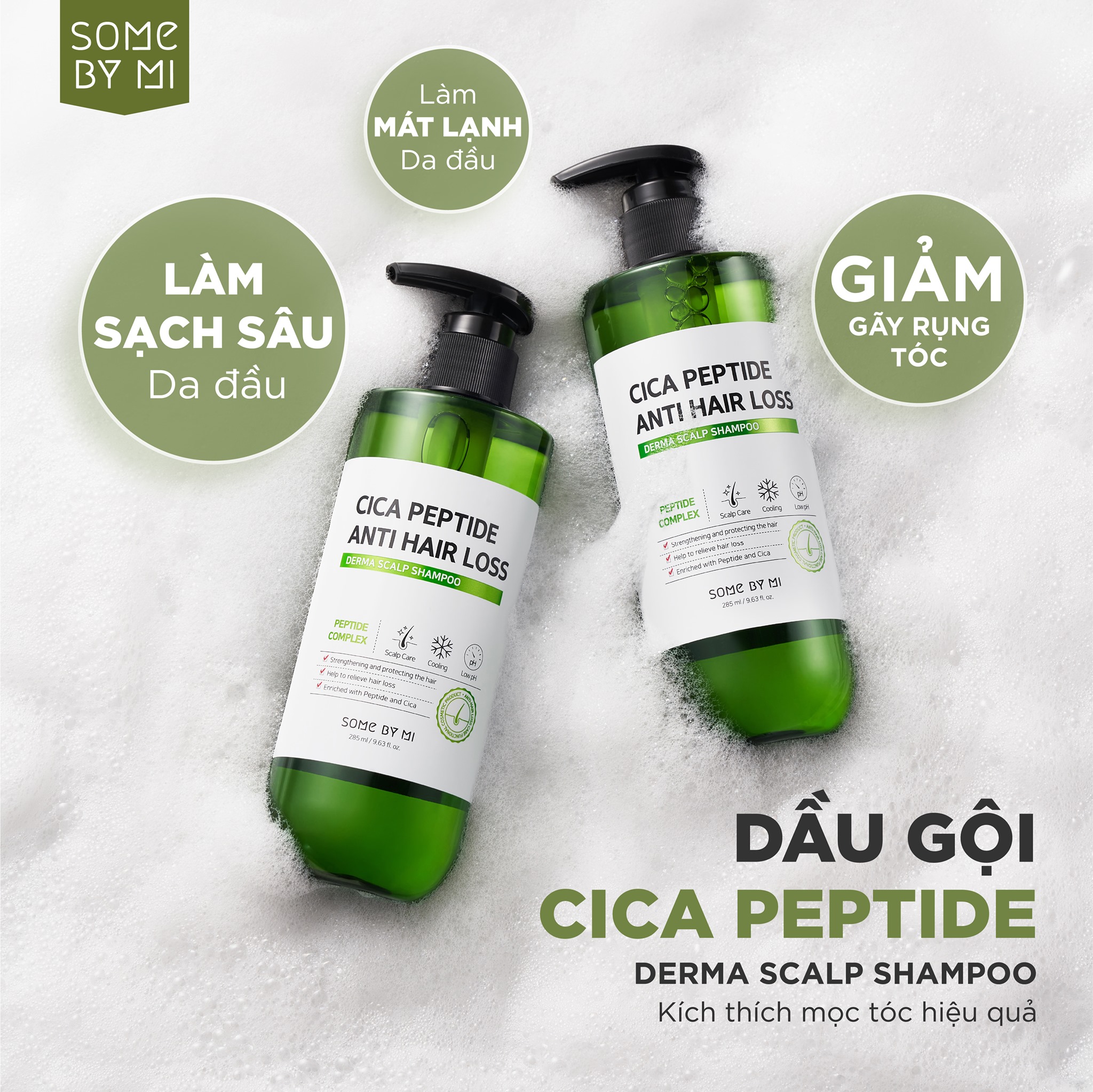 Dầu Gội Cica Peptide Some By Mi 285ml thuộc bộ sản phẩm chăm sóc tóc mới Cica Peptide của Some By Mi, dành cho những người đang gặp vấn đề về rụng tóc. Dầu gội giúp làm sạch, cung cấp độ ẩm và hỗ trợ phục hồi cho da đầu bị kích ứng. Ngoài ra, sản phẩm còn hỗ trợ làm giảm và ngăn rụng tóc, giúp cho mái tóc luôn bóng khỏe, mềm mượt.