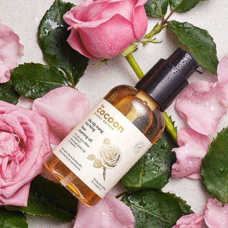 Dầu Tẩy Trang Tinh Dầu Hoa Hồng Chưng Cất The Cocoon Rose Cleansing Oil là dầu tẩy trang với thành phần chính là tinh dầu chưng cất từ hoa hồng kết hợp với vitamin E giúp làm sạch sâu lớp trang điểm, bụi bẩn và dầu thừa, dưỡng ẩm mà không để lại cảm giác nhờn rít khó chịu thuộc thương hiệu mỹ phẩm thuần chay Cocoon đến từ Việt Nam.
