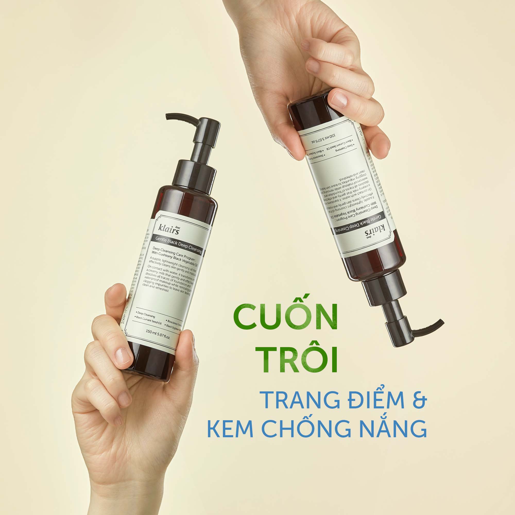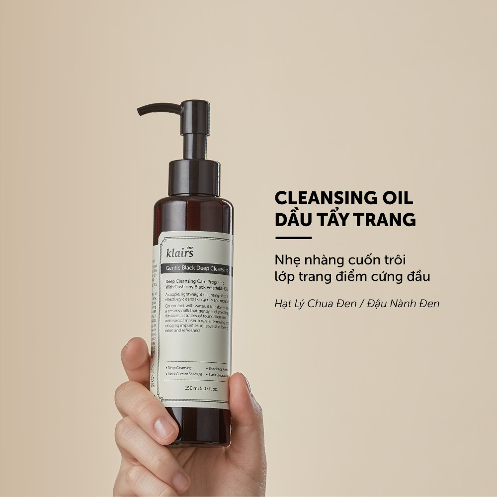 Dầu Tẩy Trang Kiểm Soát Bã Nhờn, Cung Cấp Dưỡng Chất Cho Da Klairs Gentle Black Deep Cleansing Oil là tẩy trang dạng dầu được điều chế từ các tinh dầu khác nhau như dầu mè đen, dầu hạt nho đen,... giúp nhẹ nhàng làm sạch bụi bẩn, lớp trang điểm, sợi bã nhờn trong lỗ chân lông mà vẫn duy trì độ ẩm cho da hiệu quả thuộc thương hiệu Klairs đến từ Hàn Quốc.