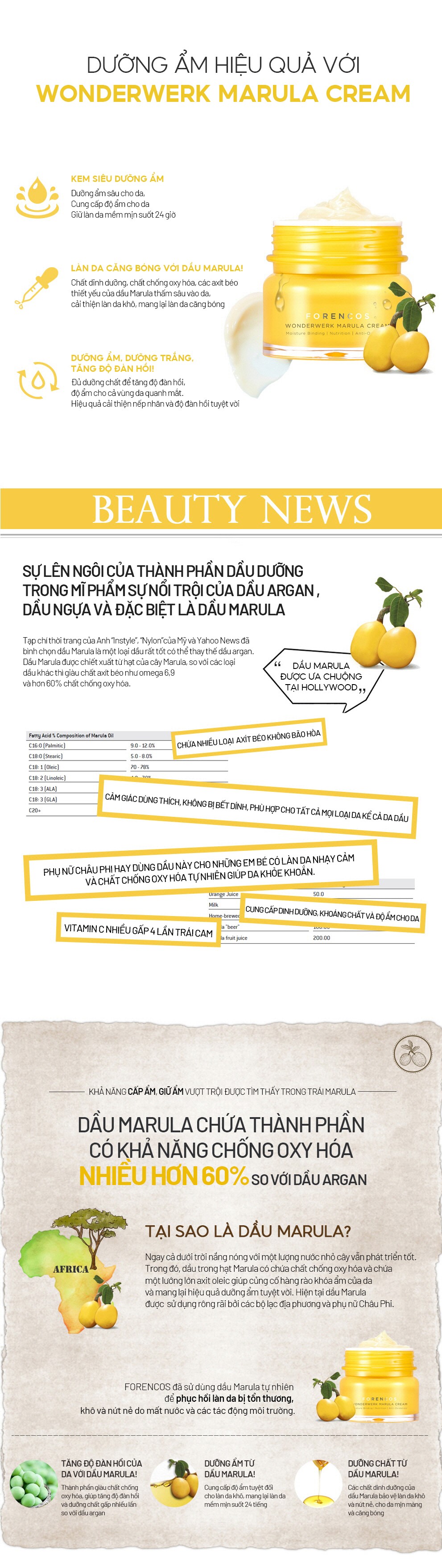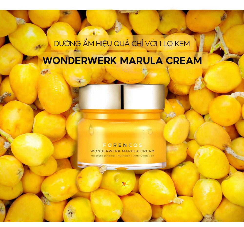 - Kem Dưỡng Ẩm, Trắng Da, Cải Thiện Nám, Ngăn Ngừa Lão Hóa Da Ban Đêm Forencos Wonderwerk Marula Cream với chiết xuất tinh dầu từ trái Marula có chứa acid Oleic, acid béo thiết yếu và chất chống oxy hóa, xóa vết châm chim và nếp nhăn, làm chậm quá trình lão hóa, khả năng dưỡng ẩm, phục hồi cao, an toàn, lành tính mà thấm rất nhanh.