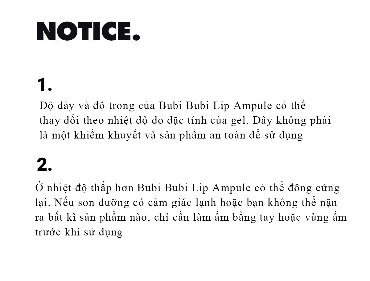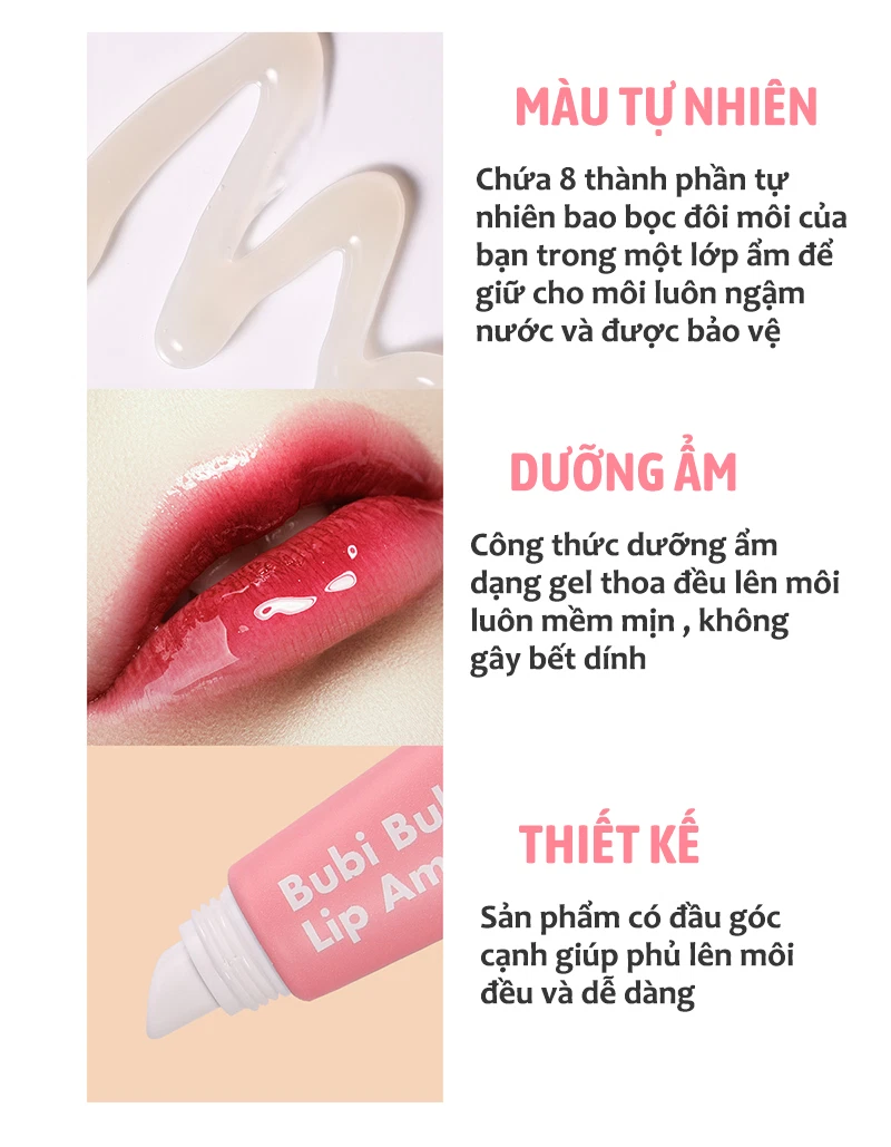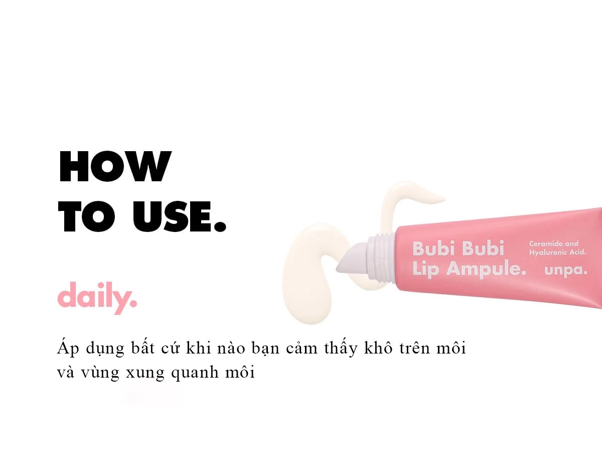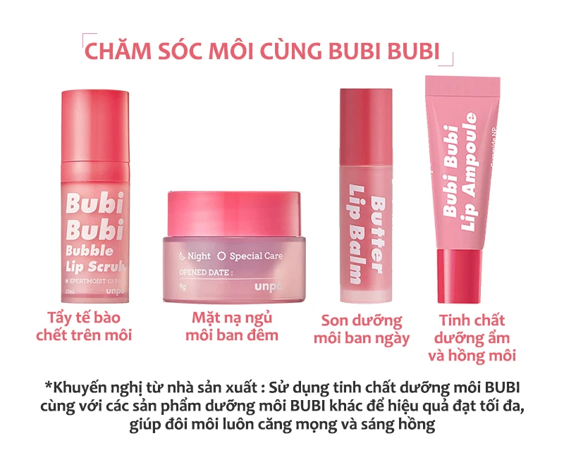 *Tip sử dụng: Có thể kết hợp sử dụng với tẩy tế bào chết môi Bubi Bubi Lip để có làn môi mịn màng, ẩm mượt và căng mọng.