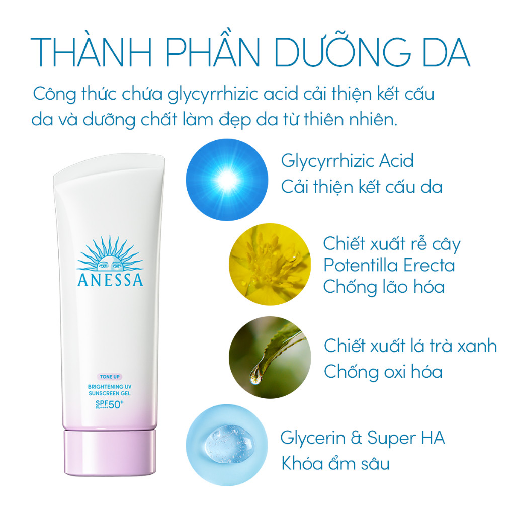 '- Gel chống nắng dưỡng sáng & nâng tông ANESSA Brightening Gel SPF50+ PA++++ phiên bản mới với bao bì giấy thân thiện hơn với môi trường.