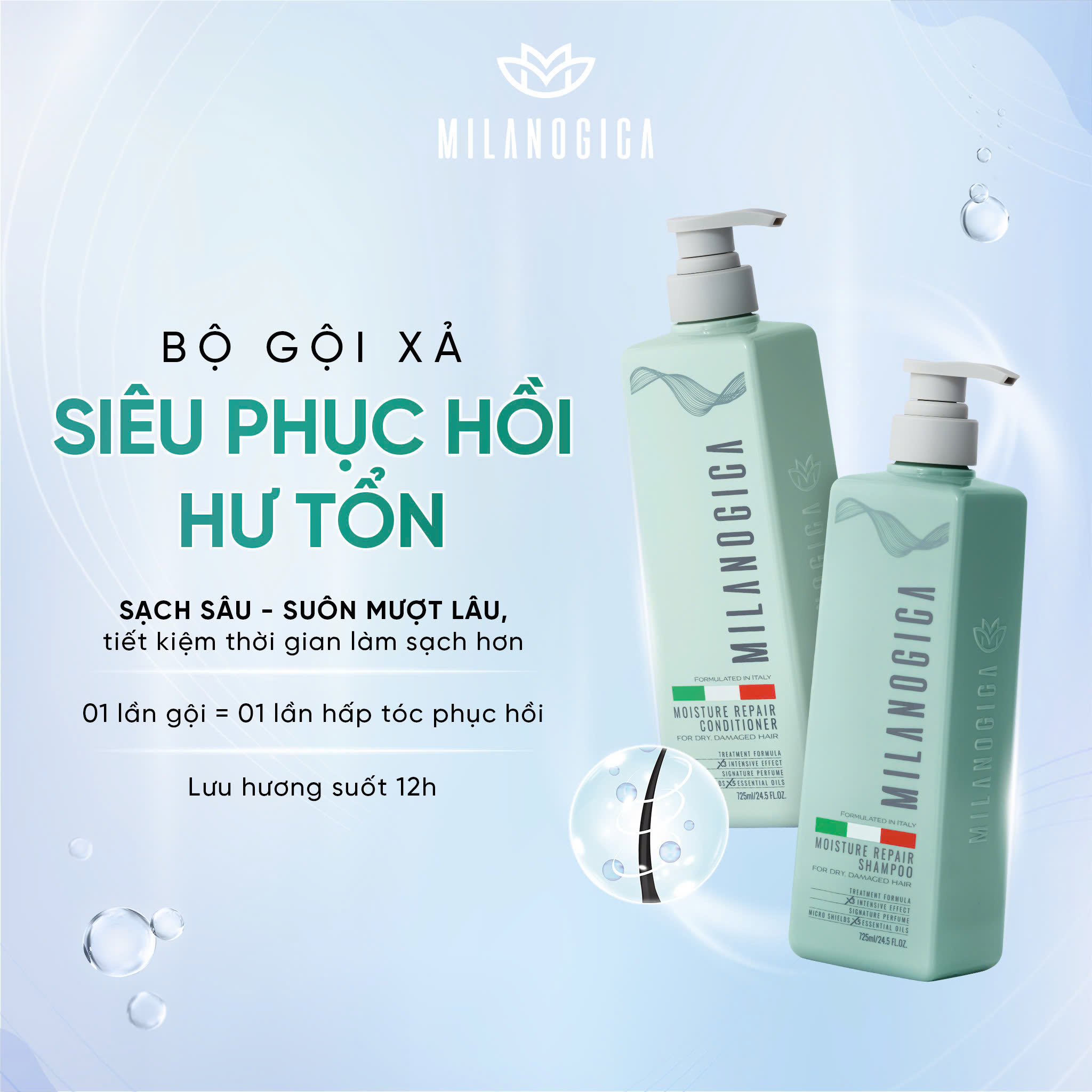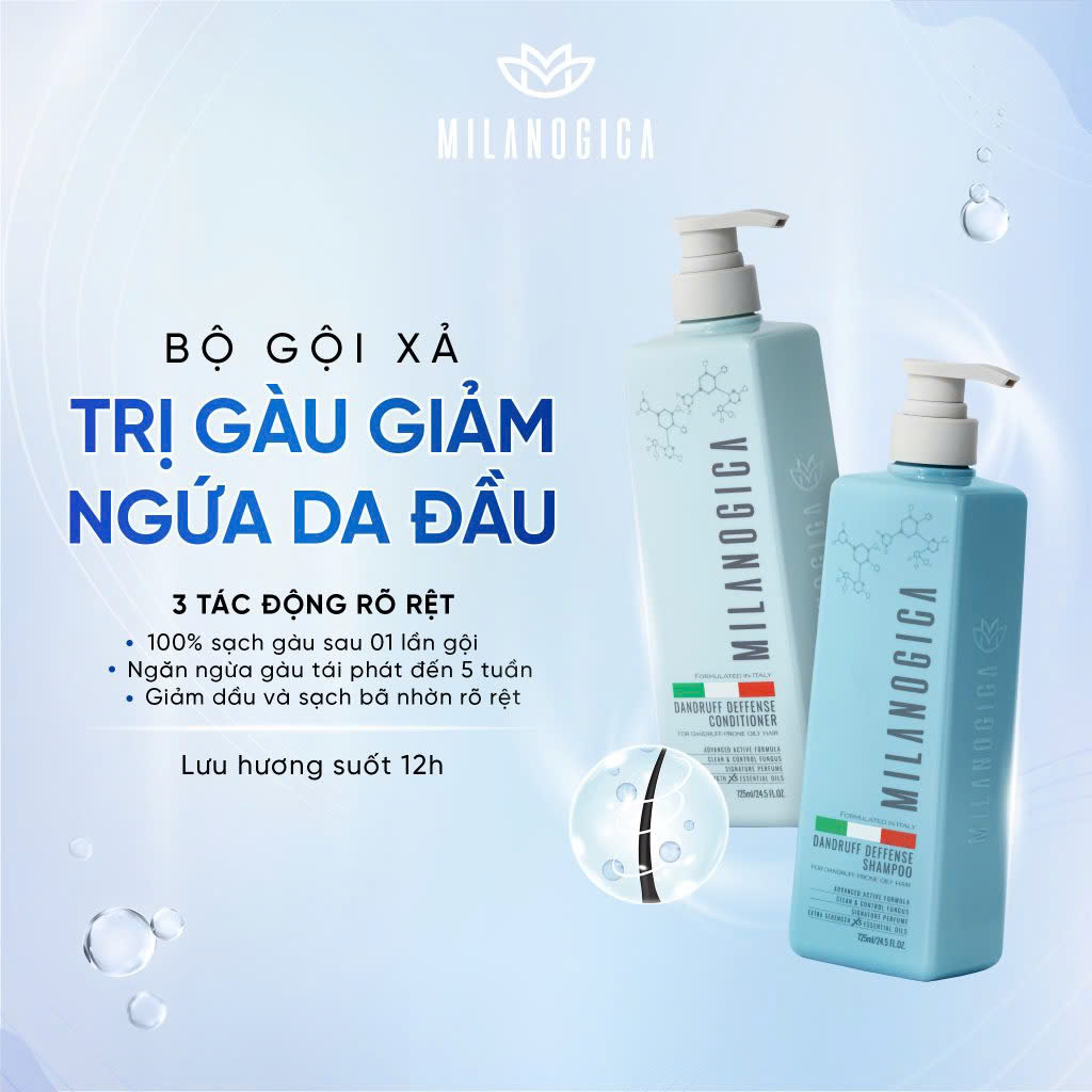 Bộ Gội Xả Milanogica 355ml – Phục Hồi & Trị Gàu – Chuẩn tóc đẹp salon tại nhà