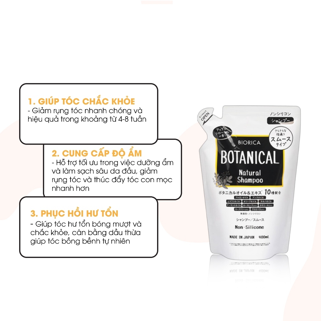 Dầu gội & Dầu xả Botanical Natural Non Silicone 400ml Nhật Bản mang trong mình các dưỡng chất từ thiên nhiên lành tính, phù hợp cho da dầu, tóc rụng, tóc yếu