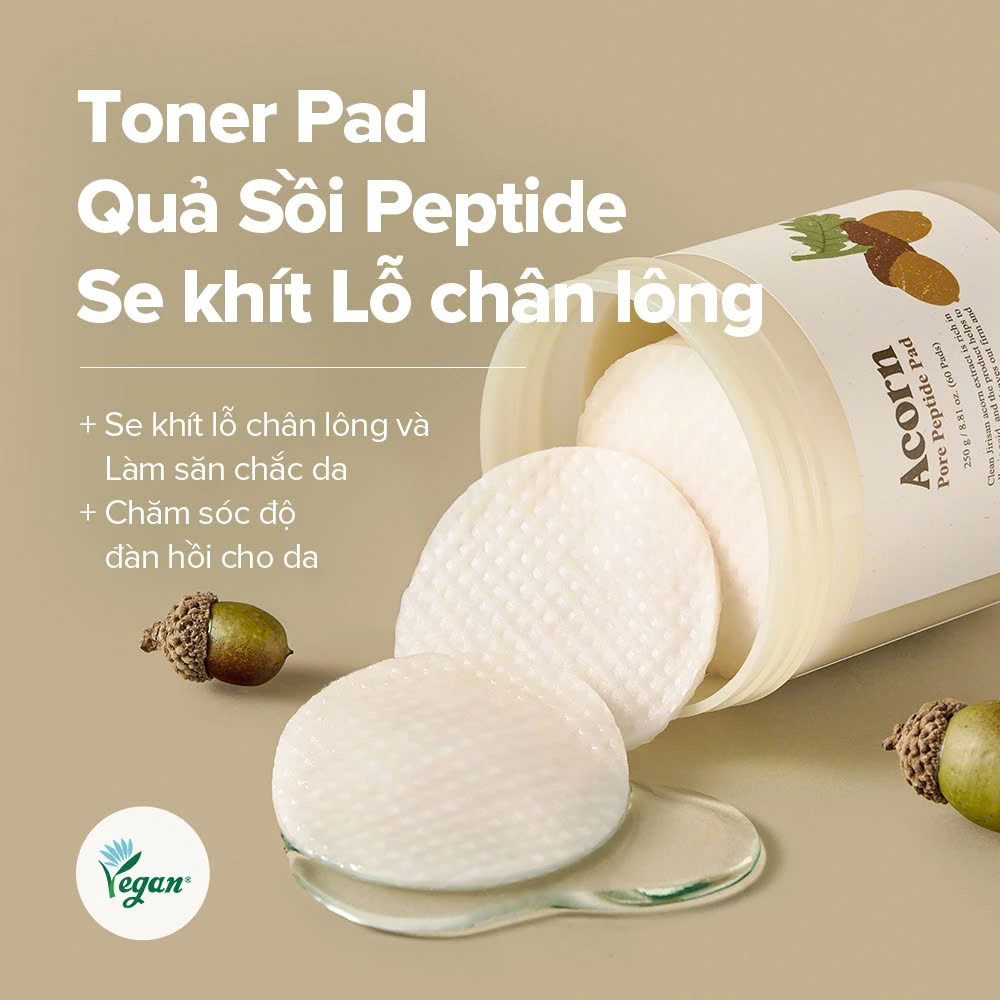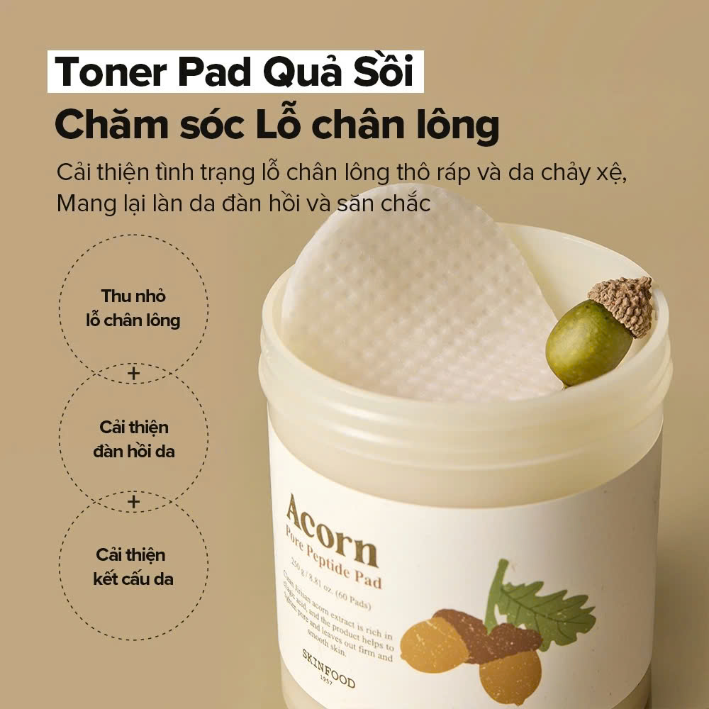 3. Hộp 60 Miếng Bông Quả Sồi Se Khít Lỗ Chân Lông Và Cải Thiện Độ Đàn Hồi Của Da Skinfood Acorn Pore Peptide Pad: