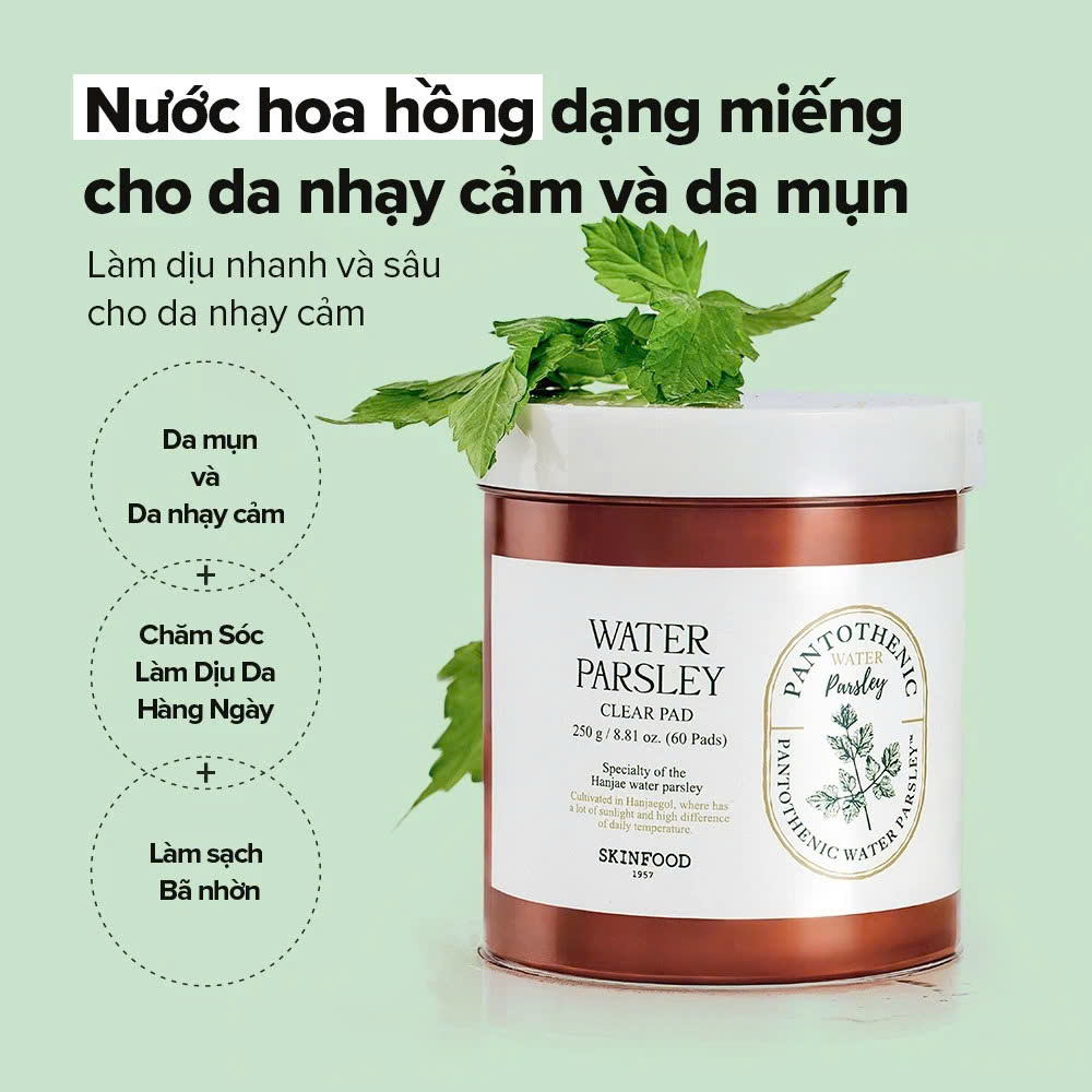 2. Hộp 60 Miếng Bông Cần Nước Kiểm Soát Bã Nhờn Và Chống Viêm Skinfood Pantothenic Water Parsley Clear Pad: