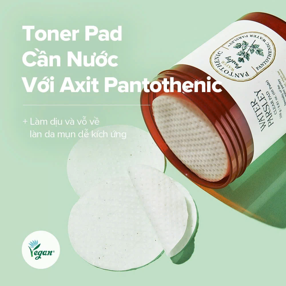 - Chứa chiết xuất từ cây cần nước tự nhiên giàu axit pantothenic. Miếng pad nhanh chóng làm dịu làn da kễ kích ứng với khả năng loại bỏ bã nhờn và tế bào chết hiệu quả.
