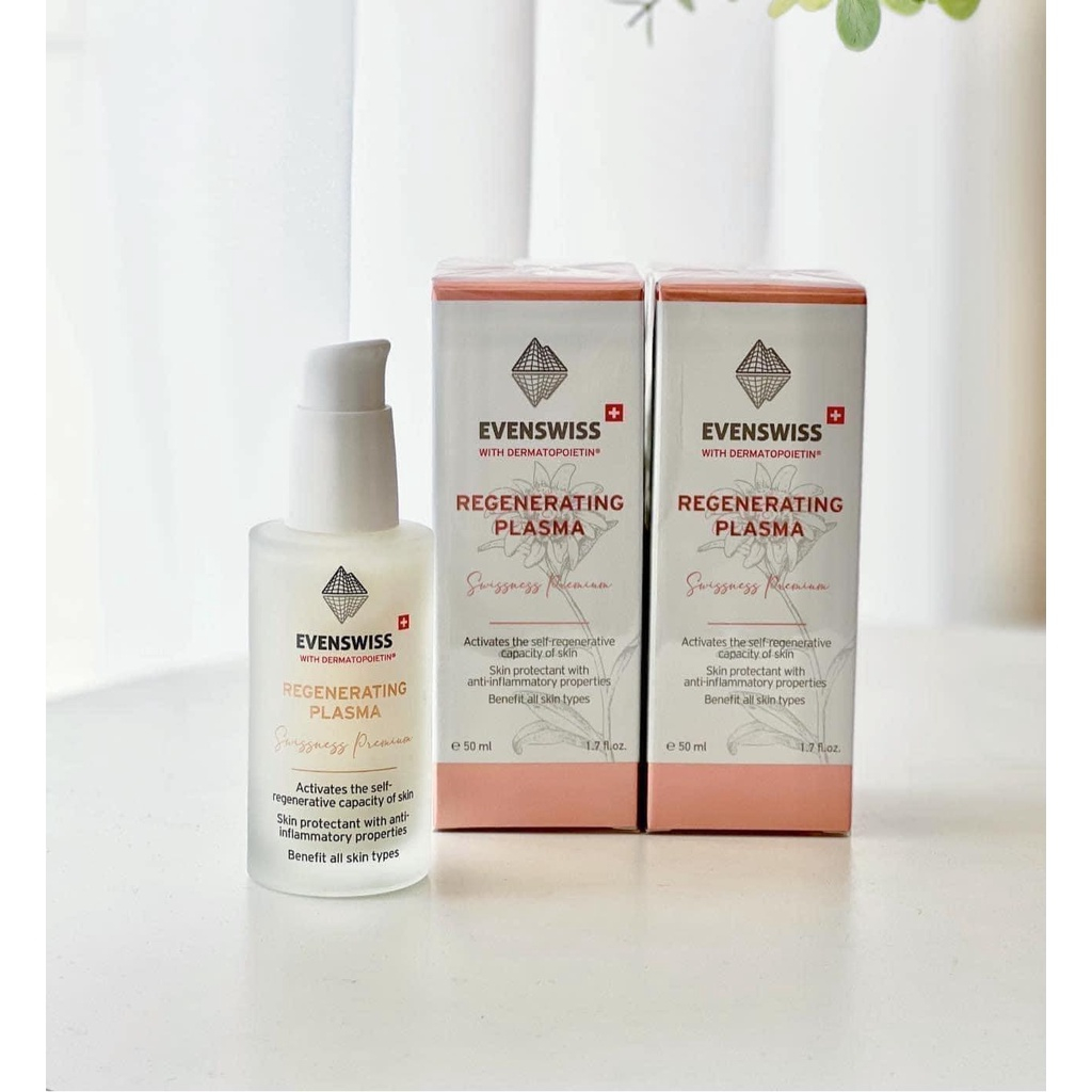 - Hiệu quả sử dụng sản phẩm Evenswiss Regenerating Plasma để phục hồi làn da và chống lại lão hóa, hạn chế sự xuất hiện của các nếp nhăn sẽ có sự khác nhau tùy theo tuổi tác và cơ địa da.