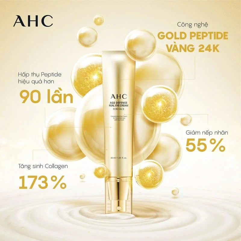 Gold Peptide™: Công nghệ độc quyền của AHC, kết hợp tinh thể vàng và peptide, giúp tăng sinh collagen lên đến 173%, cải thiện độ đàn hồi và săn chắc da.