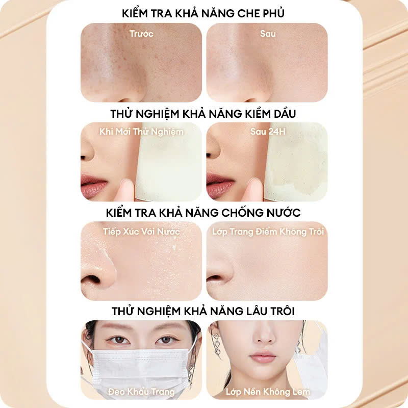 Độ che phủ cao, hỗ trợ che mụn, thâm và lỗ chân lông to hiệu quả.