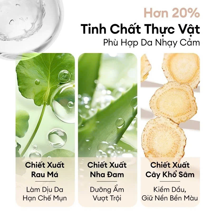 Chất kem mỏng nhẹ, dễ tán đều trên da, không gây cảm giác nặng mặt.