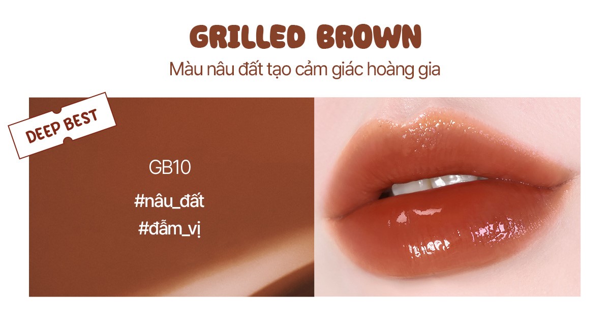 • GB10: Grilled Brown - Màu nâu đất cho cảm giác cá tính kiêu kỳ.