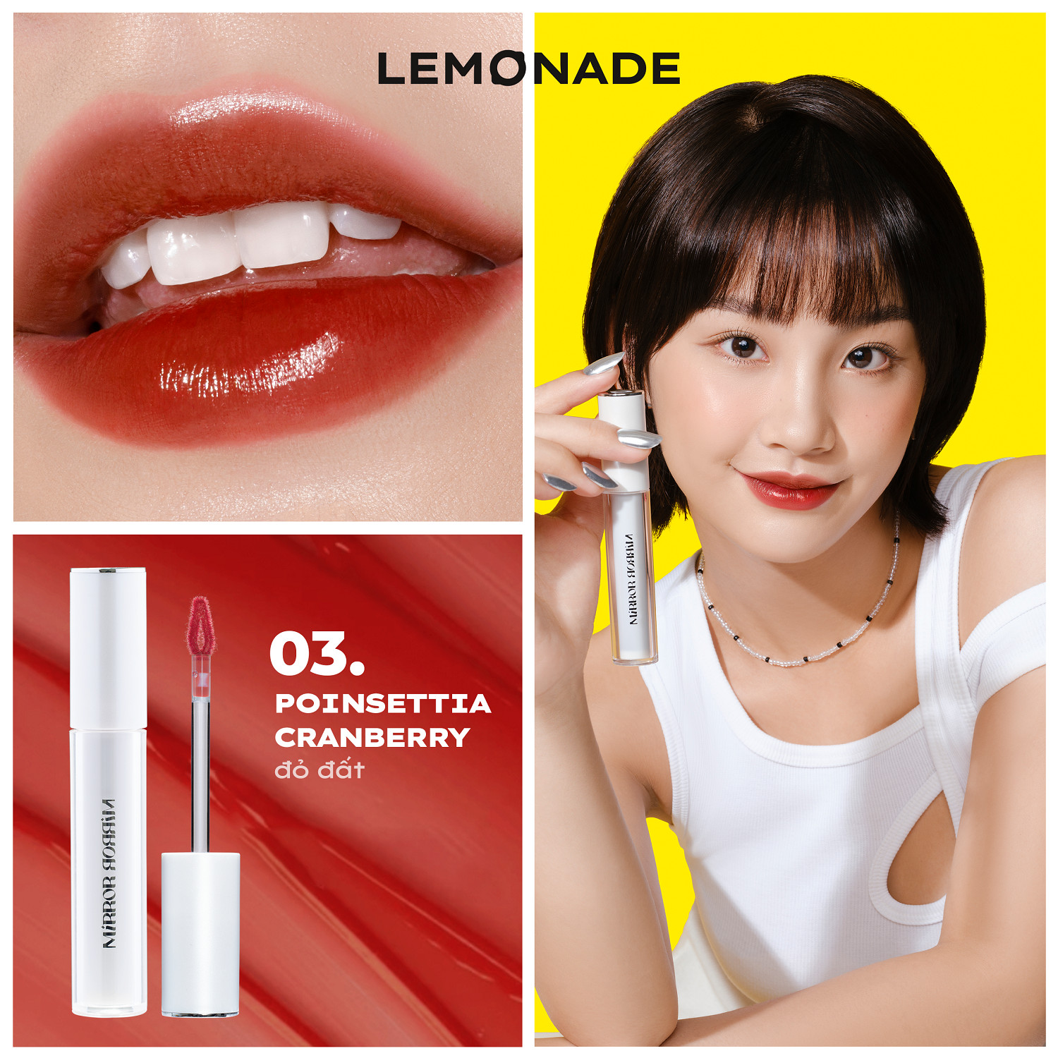 Son tint bóng Lemonade Mirror Mirror Water Tint là dòng son tint bóng có kết cấu mỏng nhẹ như serum, biến hoá bờ môi của bạn căng mọng và tràn đầy sức sống.