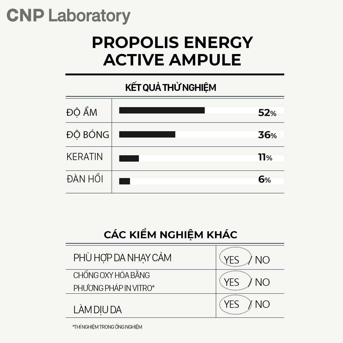 - CNP Laboratory Propolis Energy Active Ampule cung cấp độ ẩm cho da luôn căng bóng, rạng ngời.
