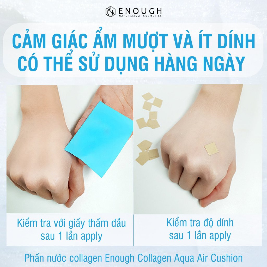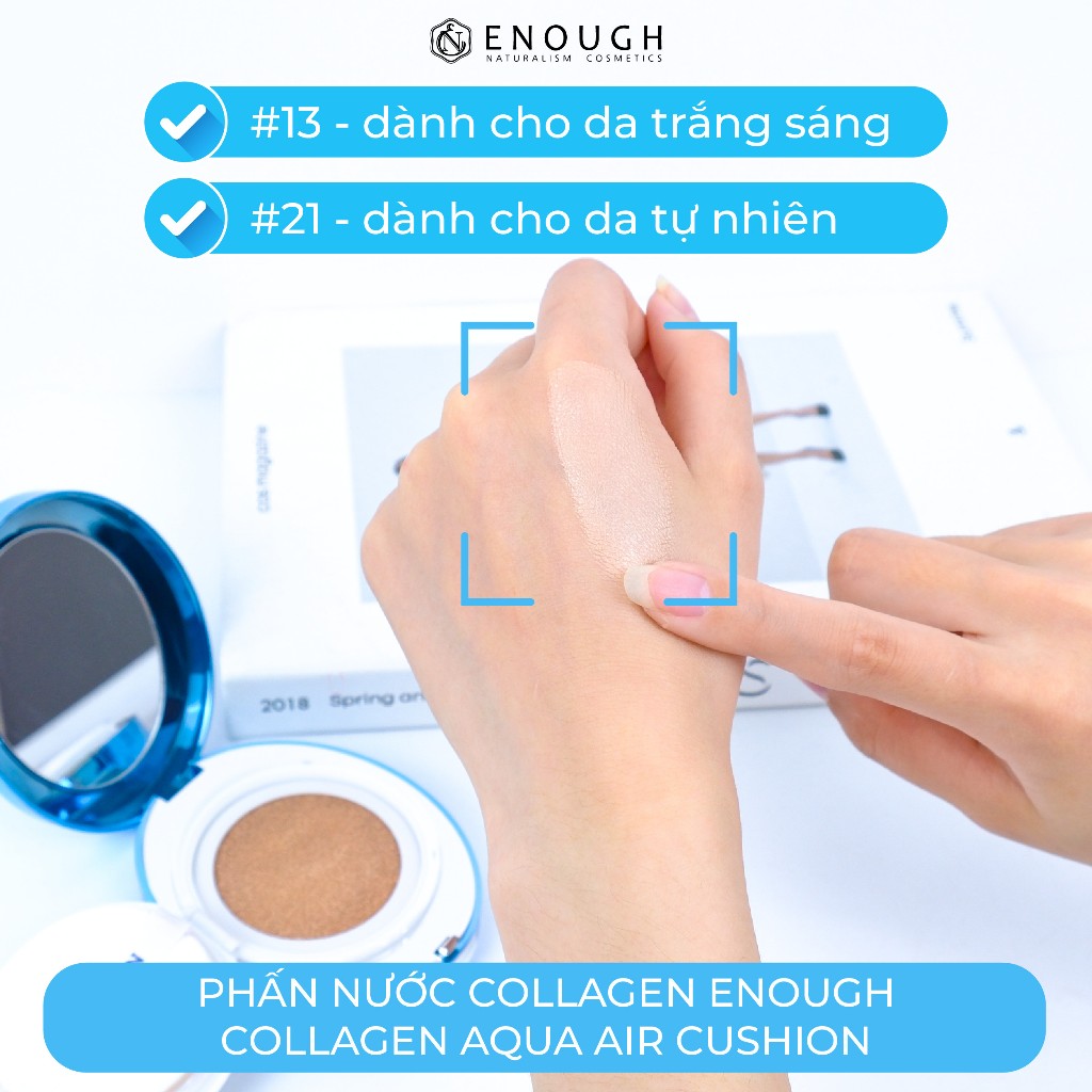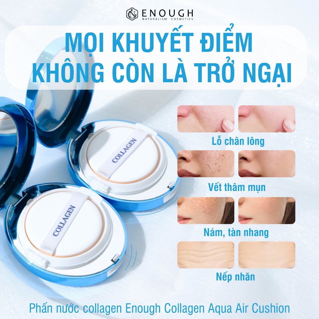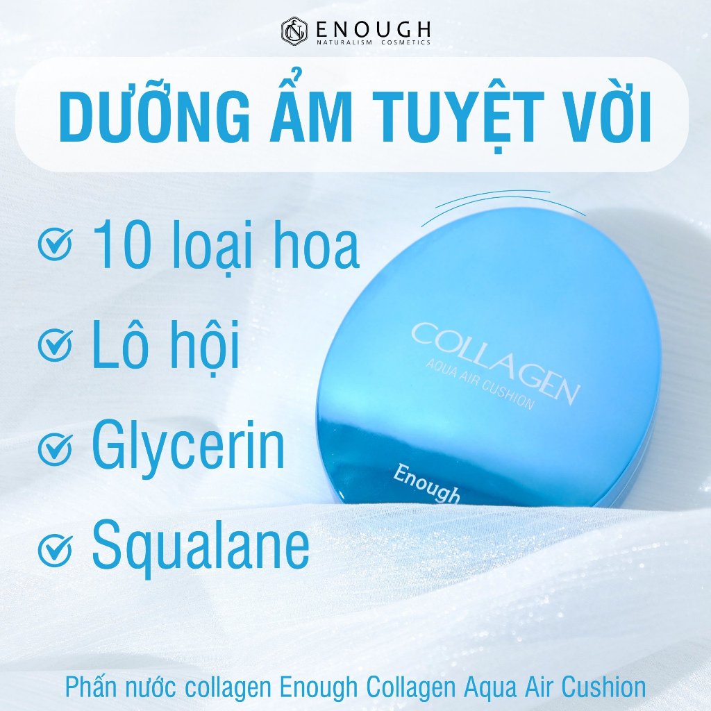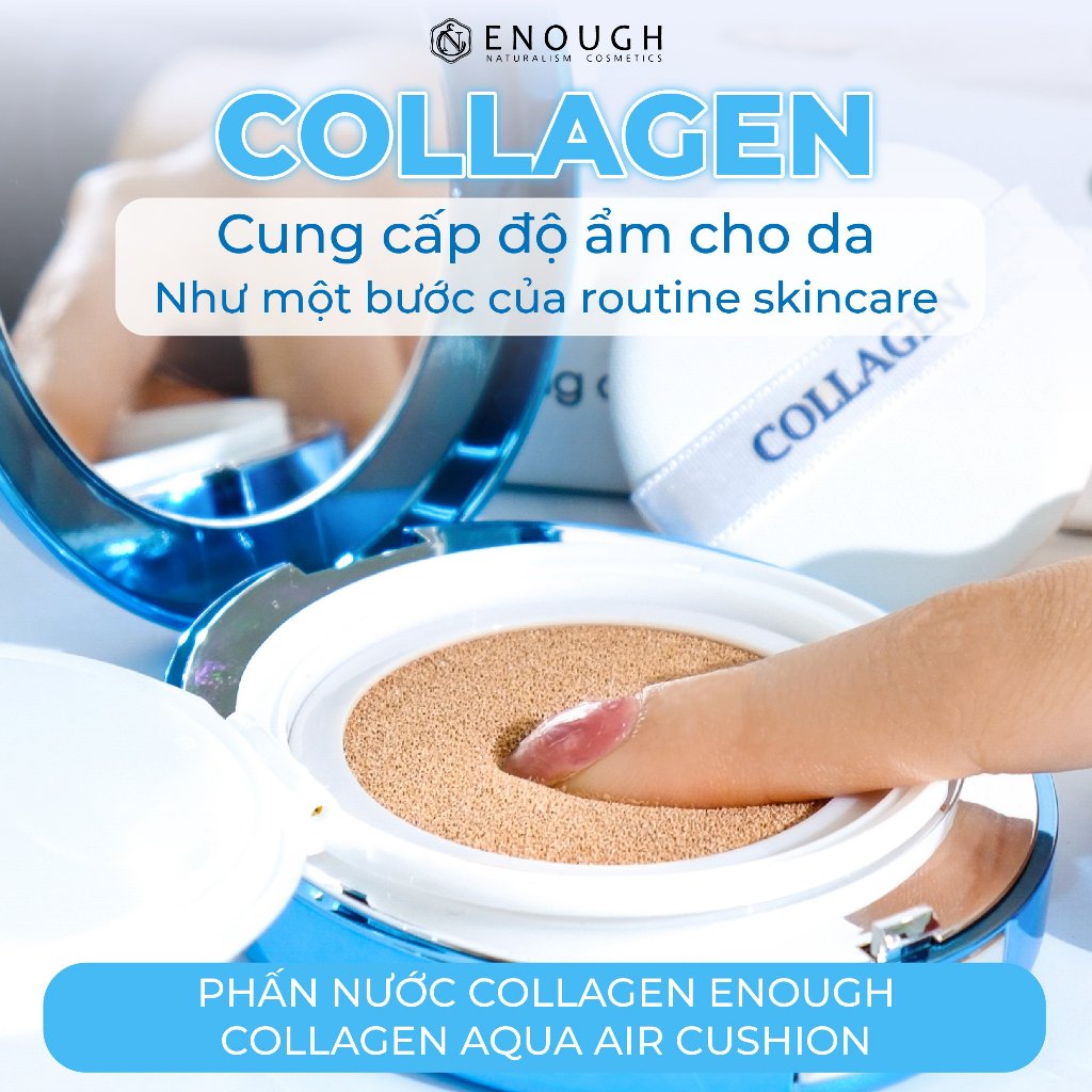 Phấn Nước Collagen Enough Collagen Aqua Air Cushion 15g chứa những hạt collagen có tác dụng tạo nên cấu trúc bền vững cho da. Giúp cho sự phát triển tái tạo da, chống lại hiện tượng lão hóa, tăng khả năng đàn hồi giữ mãi làn da mềm mại mịn màng tràn đầy sức sống.