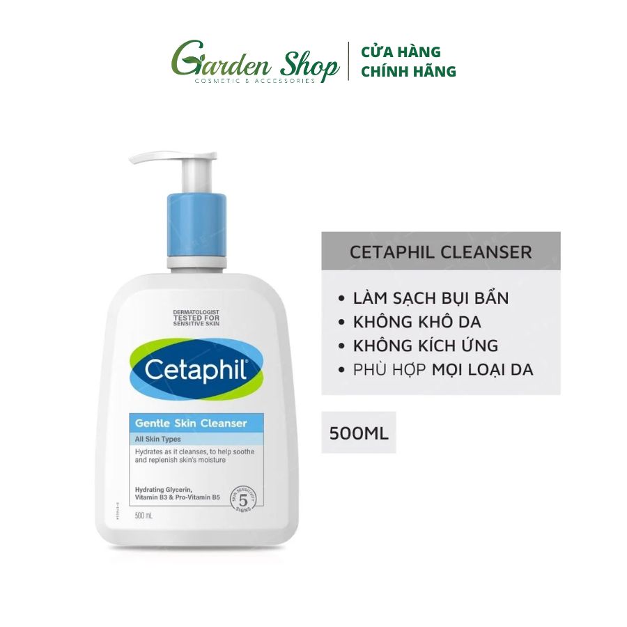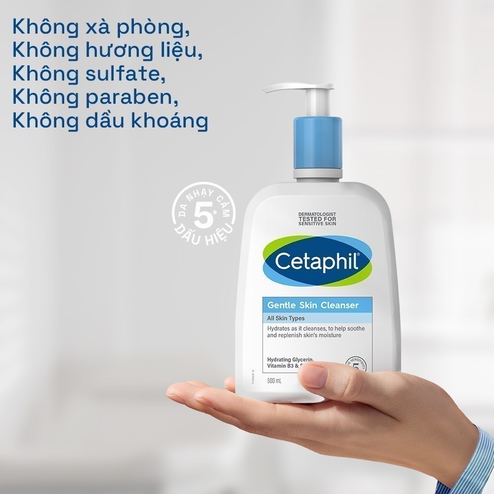 Sữa Rửa Mặt Cho Da Nhạy Cảm Cetaphil Gentle Skin Cleanser 500ml giúp làm sạch da, loại bỏ bụi bẩn, phù hợp cho mọi loại da, không làm khô da và duy trì hàng rào bảo vệ da suốt ngày dài. Được chứng minh lâm sàng có khả năng làm sạch sâu, loại bỏ hoàn toàn bụi bẩn, và tạp chất trên da một cách dịu nhẹ nhưng vẫn duy trì độ ẩm tự nhiên để bảo vệ da khỏi tình trạng khô ráp, sản phẩm với công thức lành tính không gây kích ứng sẽ an toàn cho mọi loại da, kể cả da nhạy cảm.
