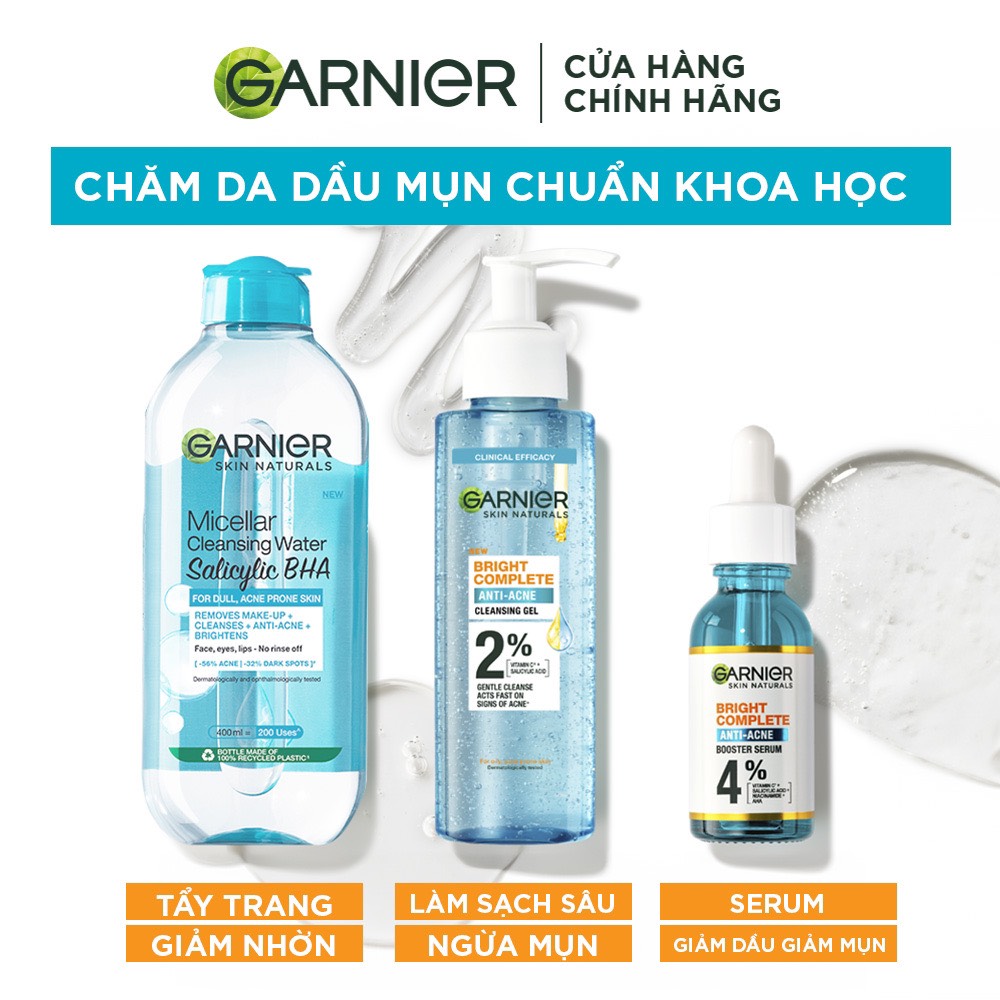 - Gel Rửa Mặt Sạch Thoáng Dịu Nhẹ Cho Da Dầu Mụn Garnier Bright Complete Anti-Acne Cleansing Gel có tác dụng: giúp làm sạch sâu bên trong lỗ chân lông, loại bỏ bã nhờn, tạp chất và bụi bẩn tích tụ trên da, giúp ngăn chặn tình trạng bít tắc lỗ chân lông; giúp làm giảm viêm và loại bỏ tế bào da chết trên bề mặt da, giúp làm giảm tình trạng mụn hiện có và ngăn ngừa mụn mới hình thành; giúp làm sáng da và làm mờ vết thâm, tàn nhang, giúp da trở nên đều màu và rạng ngời hơn; giúp làm giảm dầu thừa trên bề mặt da, giúp da trở nên thoải mái hơn.