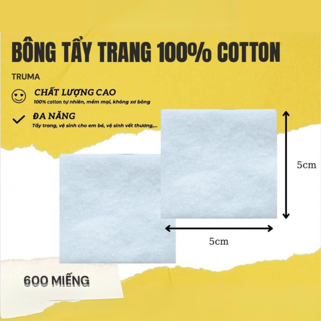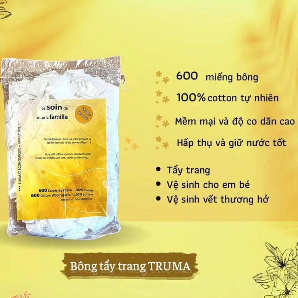 Bông Tẩy Trang Truma 600 Miếng - sản phẩm được bán duy nhất đủ tiêu chuẩn trong các hiệu thuốc của Pháp, được cấu tạo từ 100% cotton, mềm mại và dễ chịu khi sử dụng, không hóa chất, không gây kích ứng da.