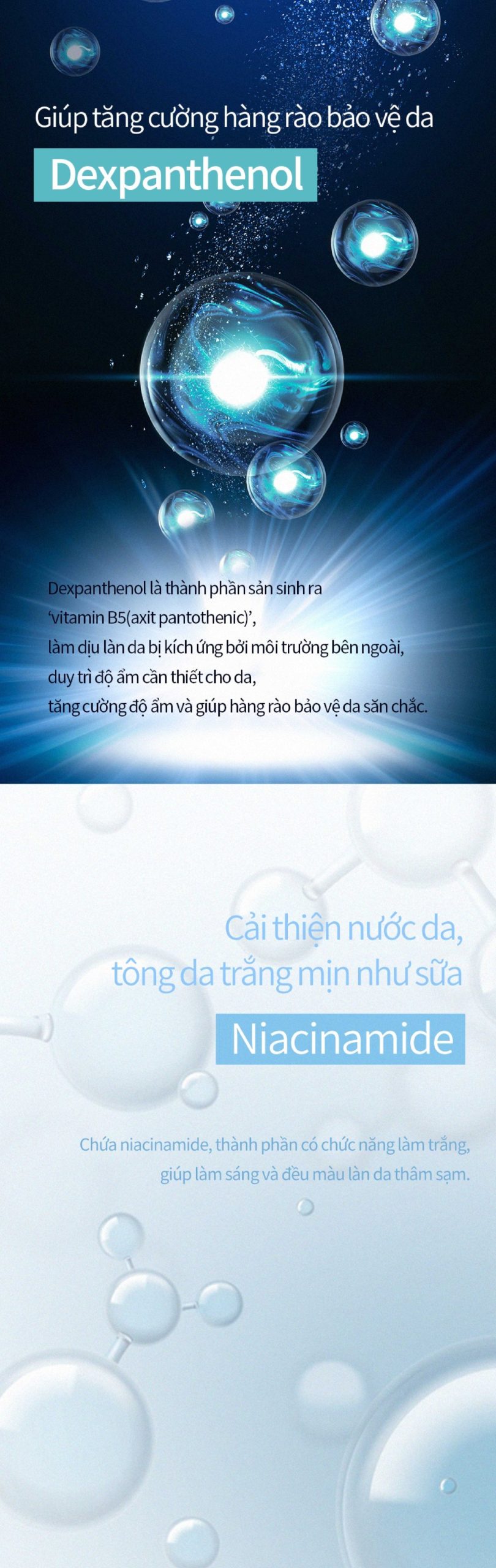 + Vitamin B5 (panthenol): Khả năng giữ ẩm cho da, giúp da trở nên mềm mại và khoẻ hơn.