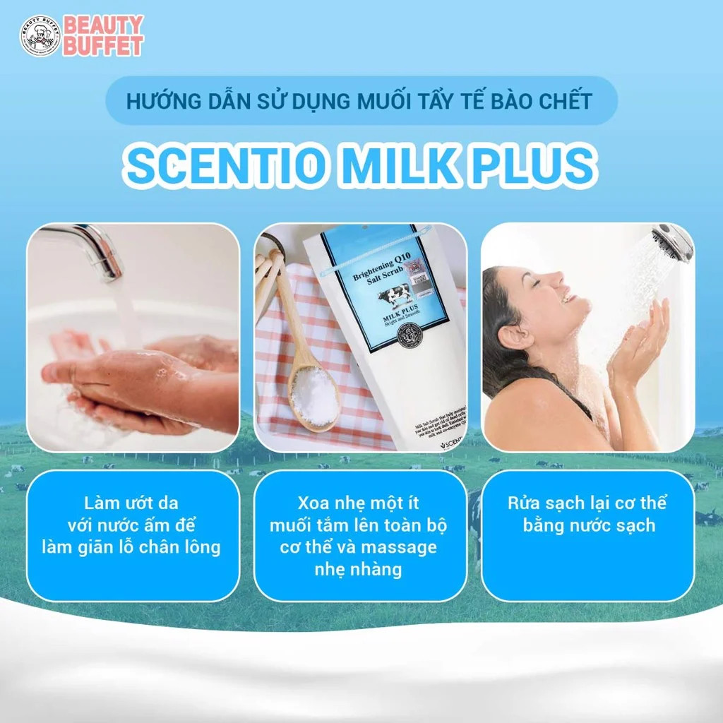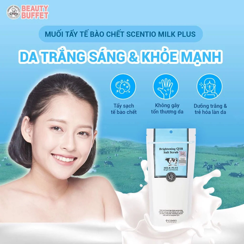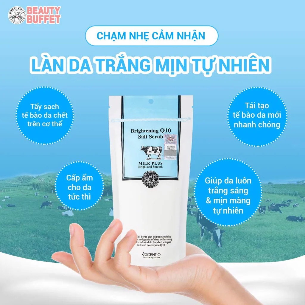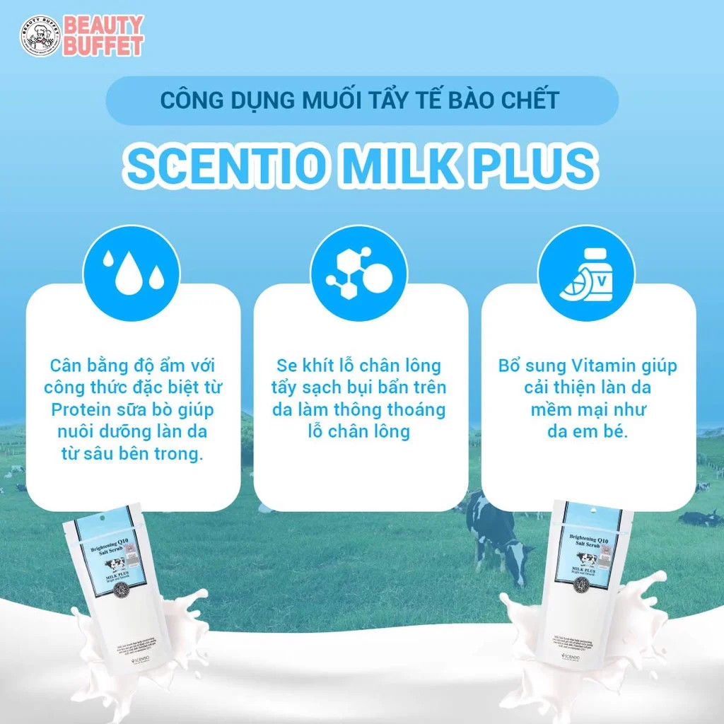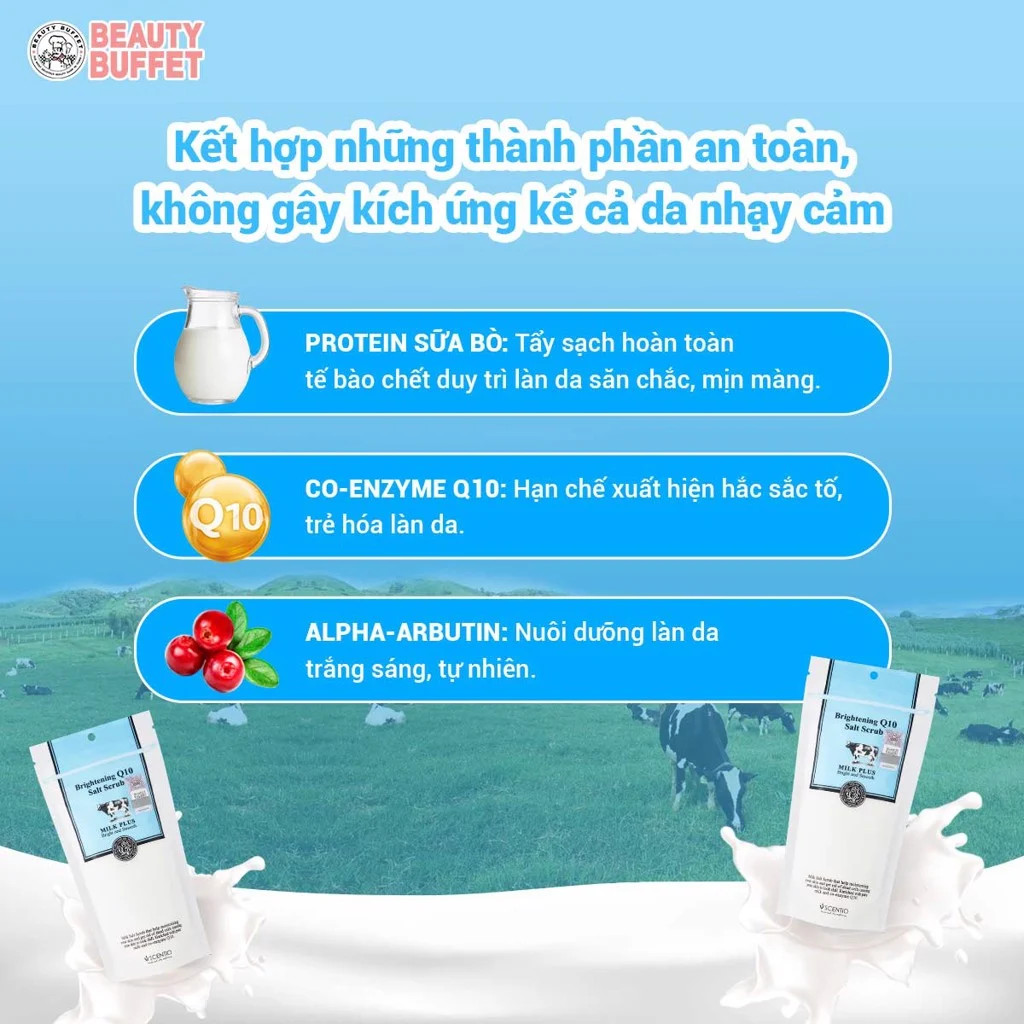 - Tẩy tế bào chết chiết xuất từ Protein sữa bò với hạt muối siêu mịn giúp nhẹ nhàng tẩy sạch tế bào da chết, cải thiện làn da trắng sáng và cung cấp độ ẩm cho làn da luôn mịn màng.