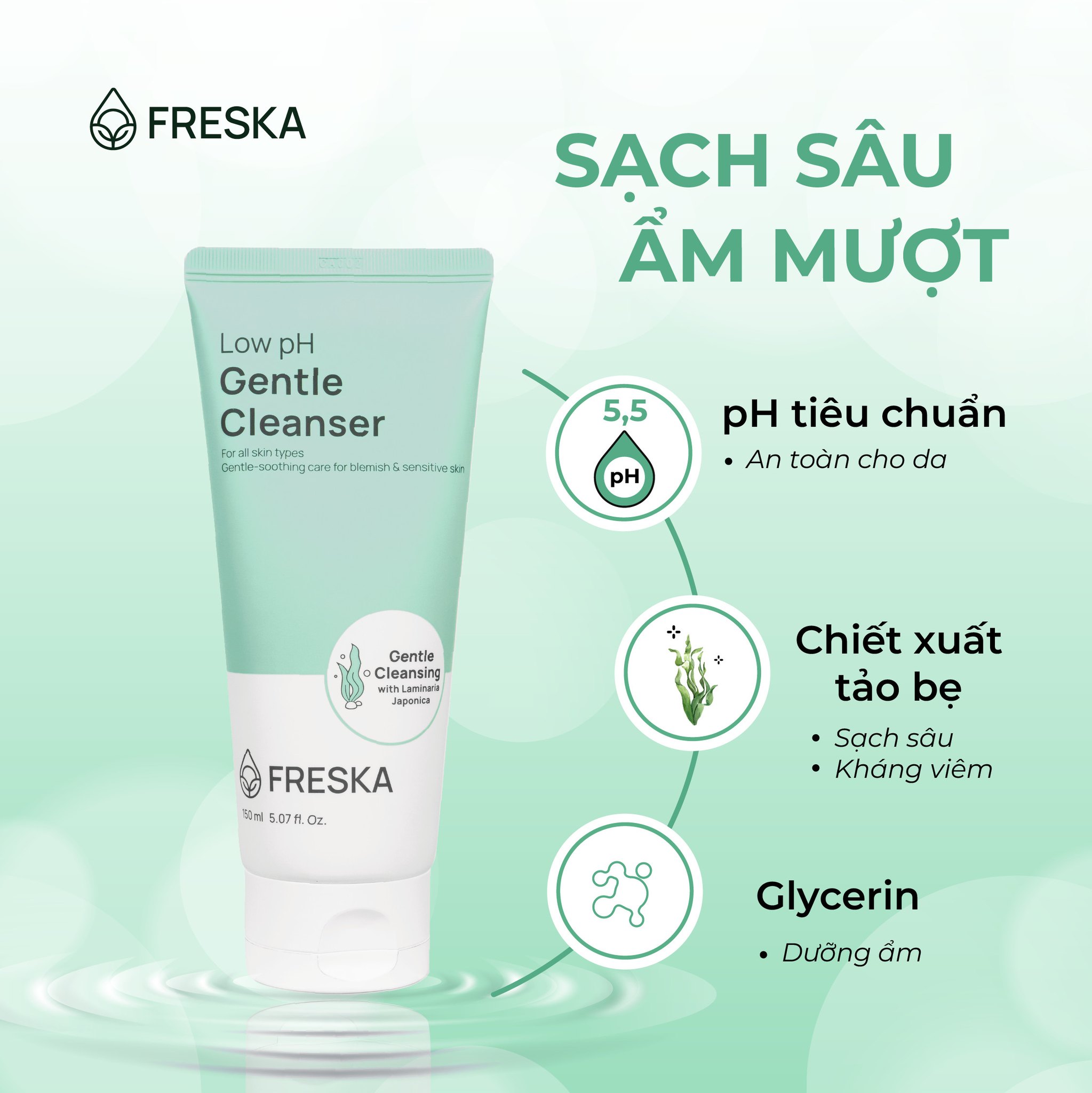 Sữa Rửa Mặt Sạch Sâu Dịu Nhẹ Freska Low PH Gentle Cleanser là dòng sữa rửa mặt có tính axit nhẹ, giúp làm sạch da nhẹ nhàng loại bỏ bã nhờn trên da, làm sạch và thông thoáng lỗ chân lông, ngừa mụn và kháng khuẩn.