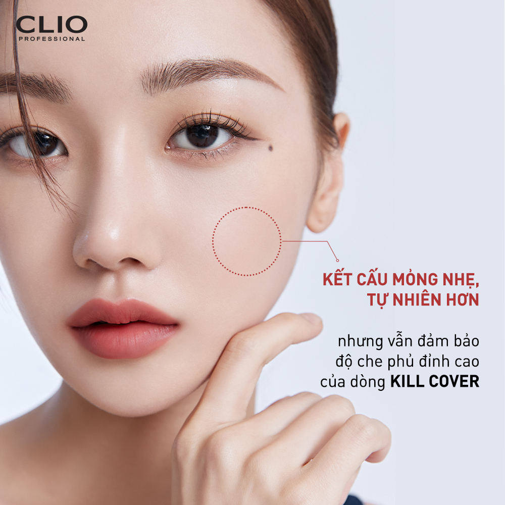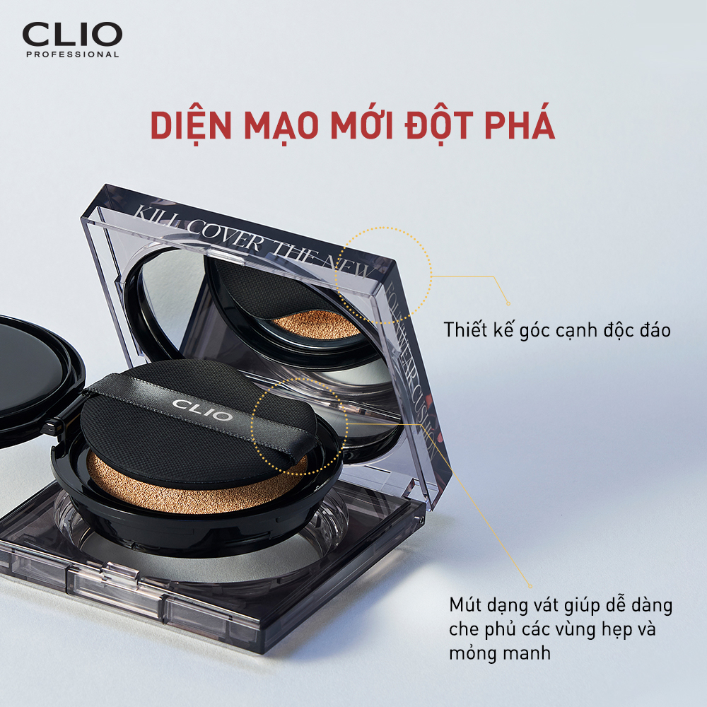 Clio Kill Cover The New Founwear Cushion là phấn nước Clio thế hệ mới với công thức che phủ đỉnh cao, giúp tạo ra lớp nền mới tinh tế hơn. Đây là sản phẩm nâng cấp từ Clio Kill Cover Founwear Cushion All New. Cushion Clio Kill Cover dễ dàng che phủ tốt các khuyết điểm trên bề mặt da như các nốt mụn, lỗ chân lông to sạm, vết nám, đồi mồi….