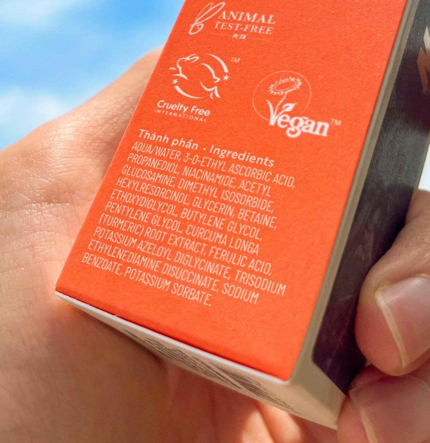 - 22% Vitamin C (3-O-Ethyl Ascorbic Acid) có tác dụng làm sáng da, tương thích với làn da nhạy cảm, ít gây kích ứng do có pH trung tính, có độ thẩm thấu tốt hơn các dẫn xuất vitamin C khác, giúp cải thiện độ đàn hồi của da, chống lão hóa, giảm nếp nhăn bằng cách thúc đẩy sinh tổng hợp collagen, giảm mẩn đỏ, đẩy nhanh quá trình làm lành vết thương, chống oxy hoá mạnh mẽ, có khả năng trung hòa gốc tự do, tăng cường hệ miễn dịch của da.