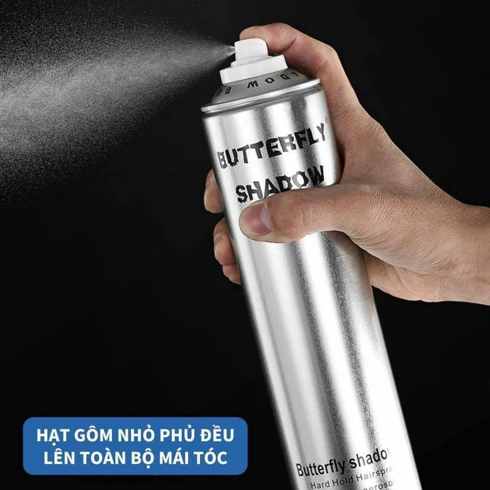 Gôm Xịt Tóc Butterfly Shadow 320ml là dòng gôm tạo kiểu đã quá phổ biến tại Việt Nam, bạn không có gì khó khăn khi bắt gặp chai gôm này ở các tiệm salon, barber tóc hiện nay. Gôm Butterfly Shadow được thiết kế khá chắc chắn, bên ngoài là màu trắng sang trọng – thân hình là hộp nhôm bạc.