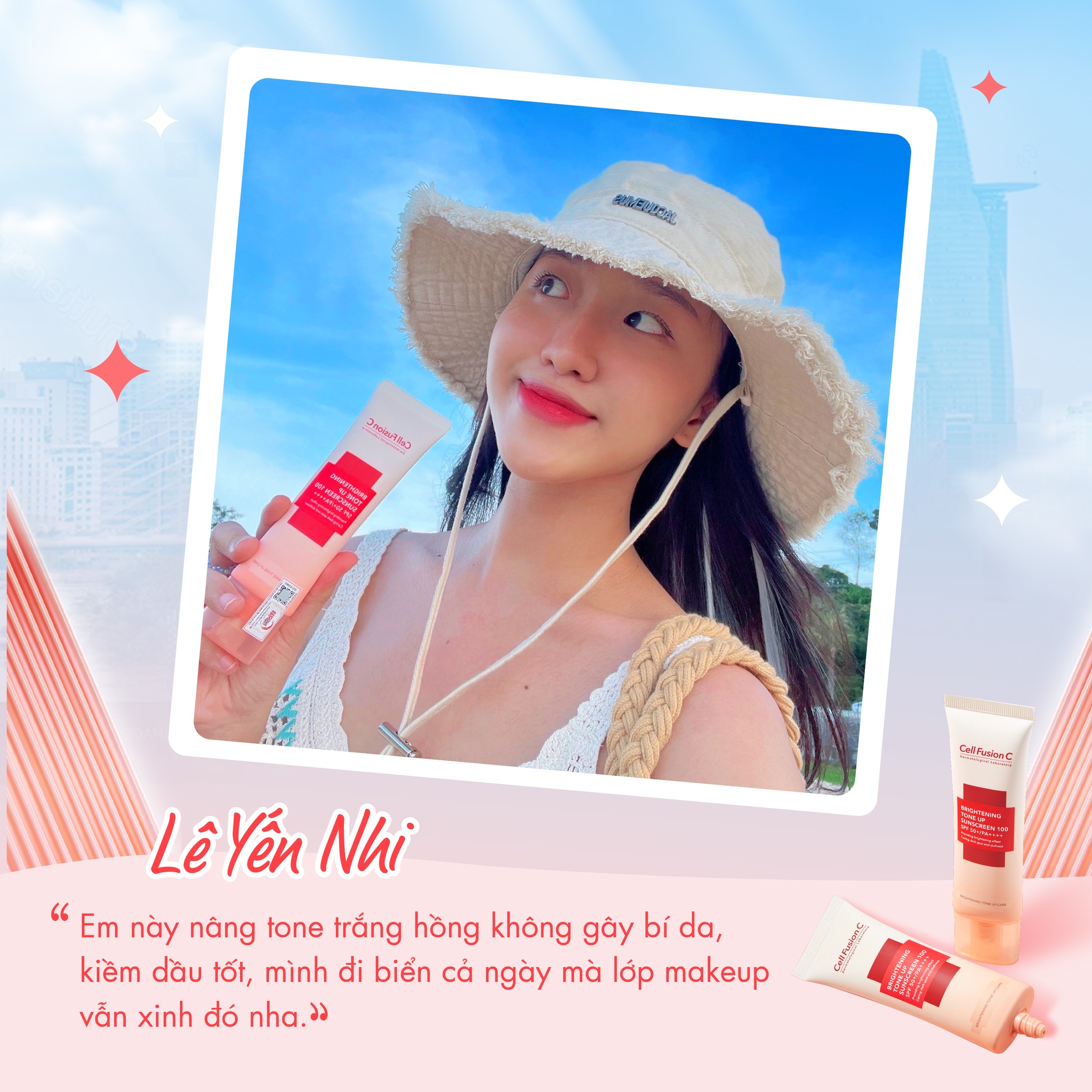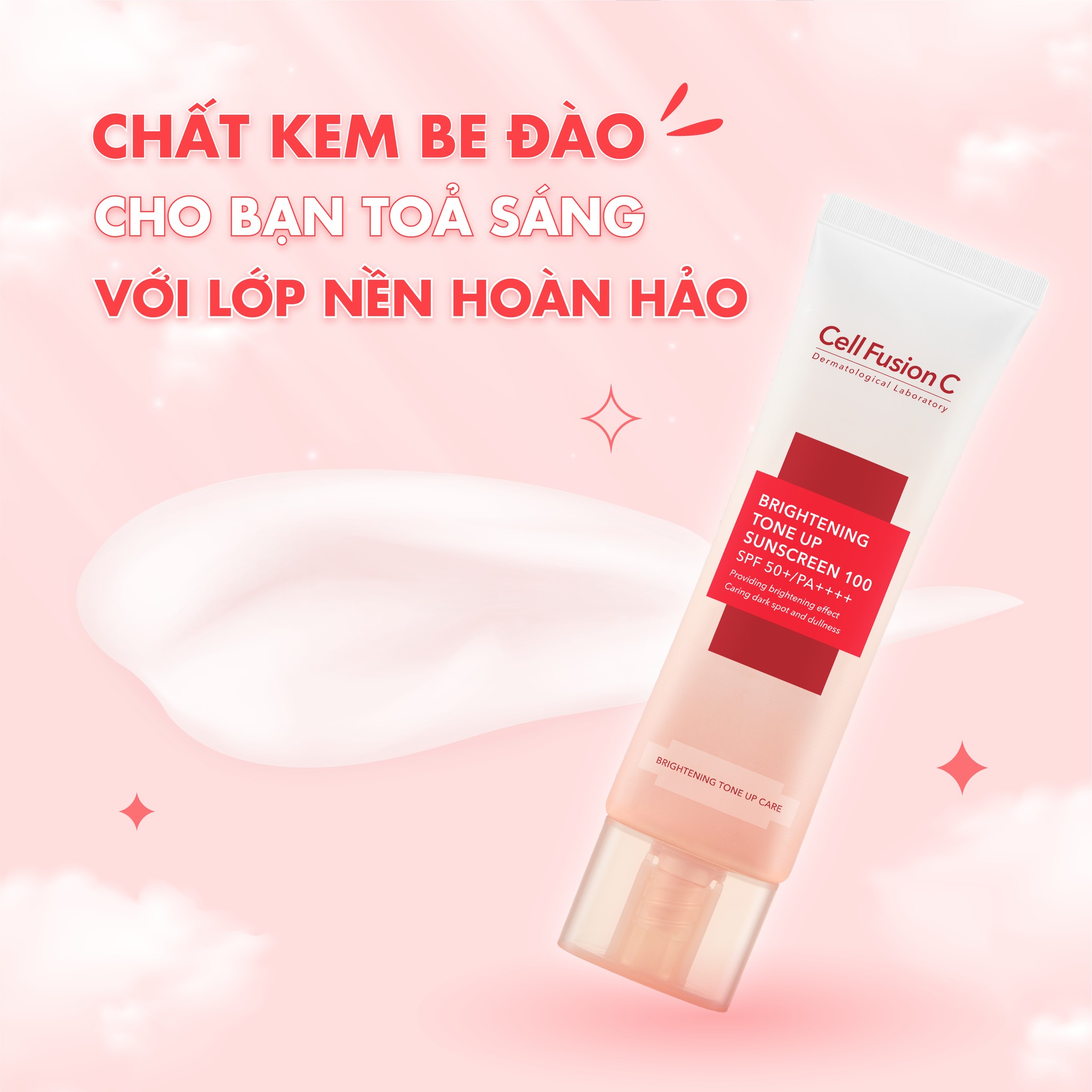 Kem Chống Nắng Cell Fusion C Brightening Tone Up Sunscreen SPF50+/PA++++ là kem chống nắng thuộc thương hiệu dược mỹ phẩm Céll Fùsion C. Với đặc điểm nổi bật của sản phẩm làm nâng tông da tự nhiên, làm đều màu da, cải thiện làn da xỉn màu nhờ chứa phức hợp 12 loại Vitamin và thành phần Niacinamide. Đồng thời giúp cải thiện kết cấu giúp da săn chắc, đàn hồi nhờ thành phần Adenosid.