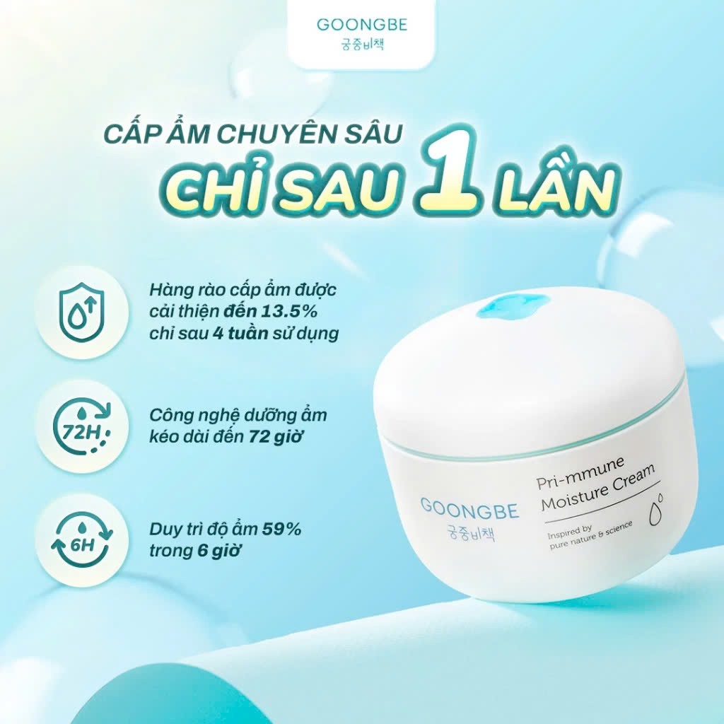 Kem Dưỡng Ẩm Mềm Da Chống Khô Nẻ Dành Cho Bé Goongbe Primmune Moisture Cream 180ml giúp cấp ẩm chuyên sâu cho bé chỉ trong 1 lần sử dụng. Kem dưỡng ẩm Goongbe với mùi thơm dịu nhẹ, thành phần an toàn lành tính, không gây kích ứng, rát mắt. Đây là sản phẩm dưỡng da chất lượng, đã thông qua kiểm nghiệm và theo tiêu chuẩn an toàn nghiêm ngặt, an tâm sử dụng cho làn da mỏng manh của bé sơ sinh & trẻ nhỏ.