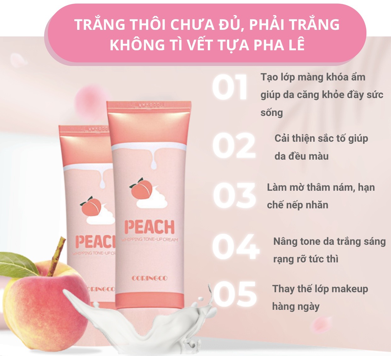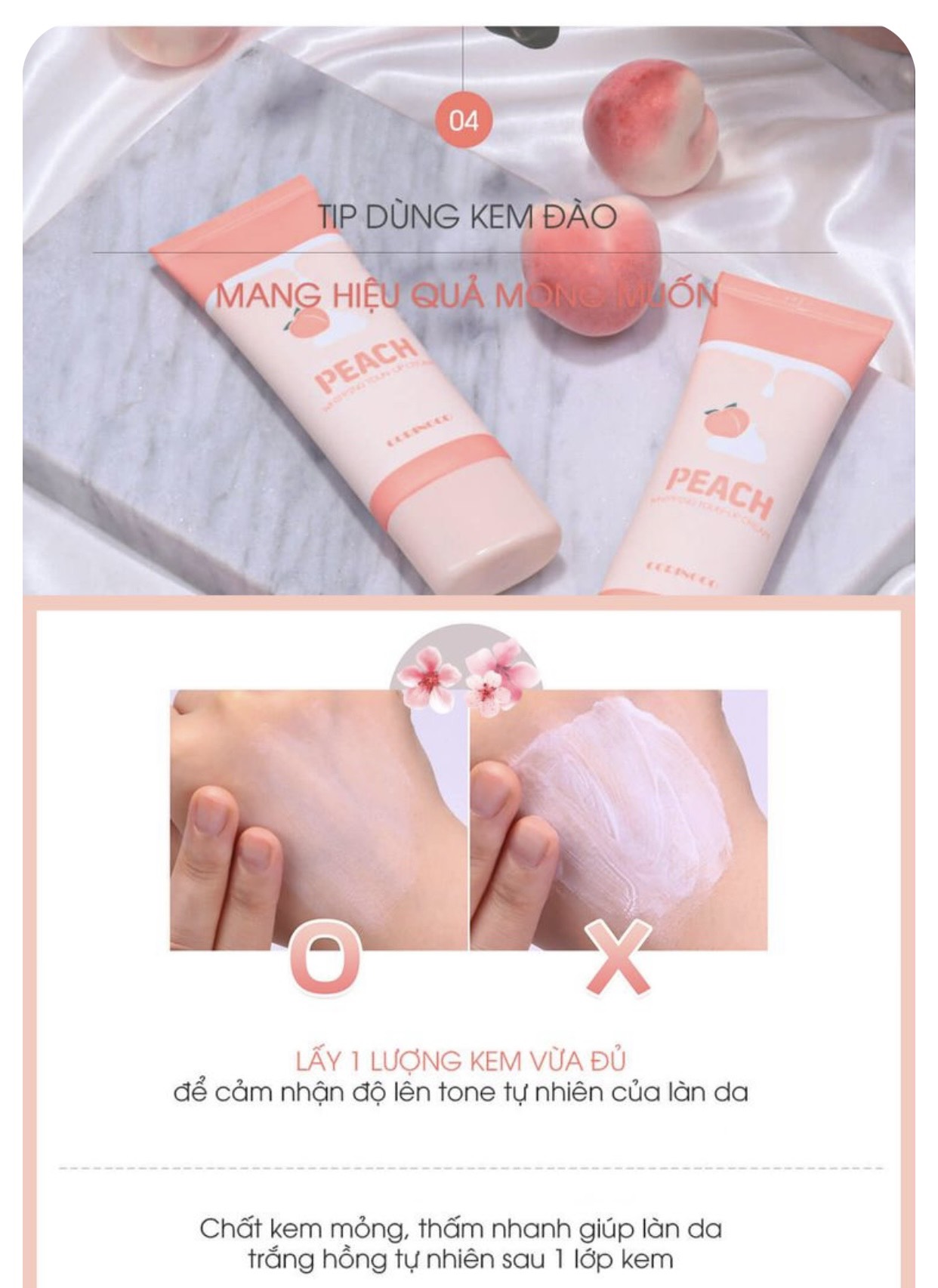- Kem Dưỡng Trắng Nâng Tông Da Coringco Peach Whipping Tone Up Cream được cục Dược - Thực phẩm Hàn Quốc chứng nhận về khả năng giảm nếp nhăn, chống lão hóa, trắng da bật tone đều theo từng ngày sử dụng.